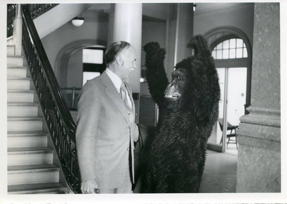 President Campbell gets a surprise visitor, 1977. Source: University Relations & Information Office fonds