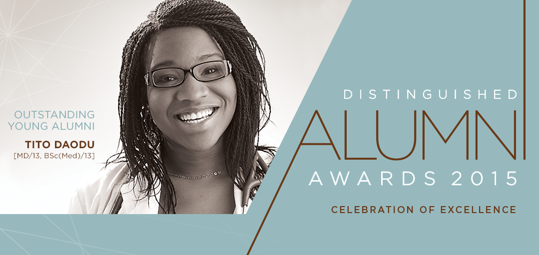 On May 12, spend an evening with Daodu [MD/13, BSC(MED)/13] and the other four recipients of the 2015 University of Manitoba Distinguished Alumni Awards: