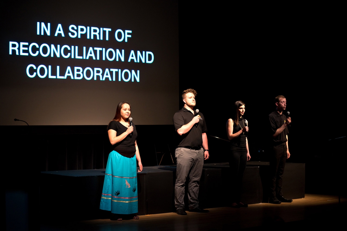 With a review of University achievements and milestones during the past year, Kearsey noted the many transformative events at the U of M in 2016, including the historic opening of the National Centre for Truth and Reconciliation on the Fort Garry campus, the opening of the new Taché Hall and the John J. Conklin Theatre, not to mention last fall’s spectacular half-time launch of the Front and Centre campaign during a Bomber game.