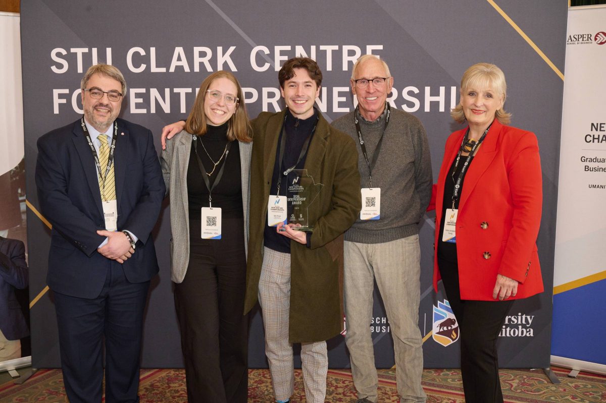 L-R: Bruno Silvestre (Asper School of Business), Laura Los, Ian Kruk, Stu Clark and Debra Jonasson-Young (Director, Stu Clark Centre for Entrepreneurship). Photo by Tony Nardella (Nardella Photography).