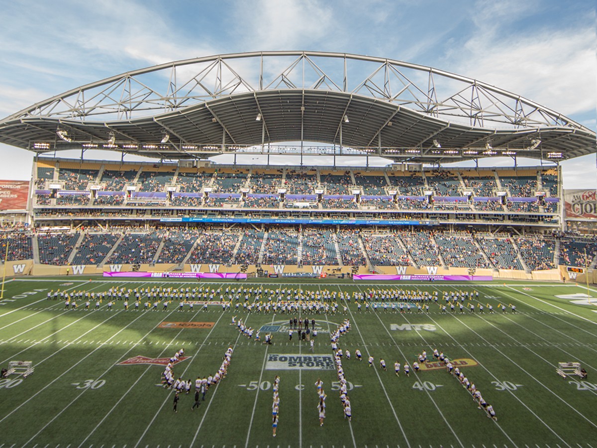 Was at the Winnipeg Blue Bomber football game this afternoon. The half time show was inspiring. So great to see the mix of performers who were enthusiastic and a great representation of our community. I was really proud to be a member of this great community and this place we call home – Manitoba. Go Bombers. Go U of M students and graduates. Go alumni. Go Manitobans.