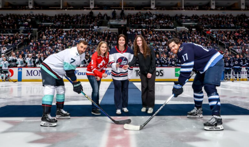 Maya Turner performed the ceremonial puck drop at the Winnipeg Jets’ game on Tuesday as part of the team’s women in sports celebration.