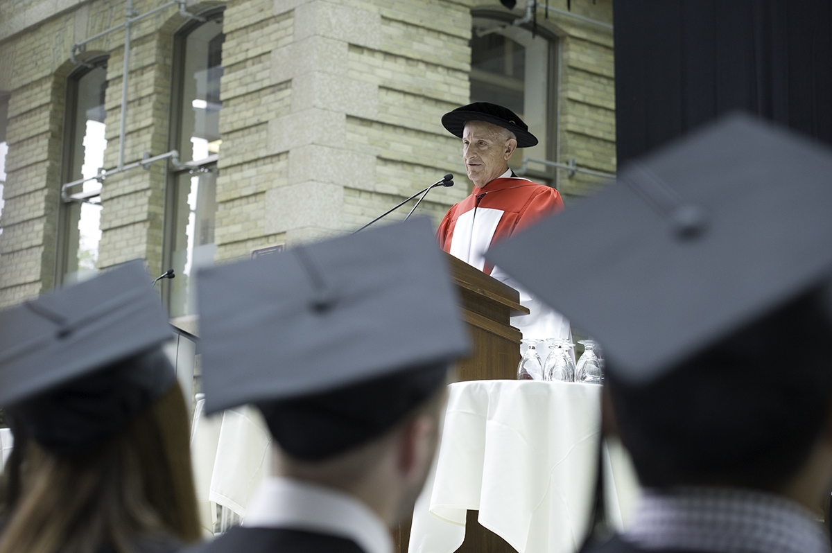 “Perhaps the most important lesson I learned from my parents was the joy of giving back and making a difference,” Ernest Rady [BComm/58, LLB/62] and honorary degree recipient [LLD/15], told the 106 new doctors graduating from the Class of 2016.