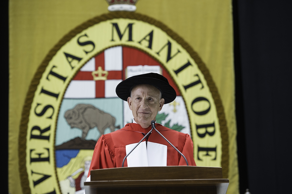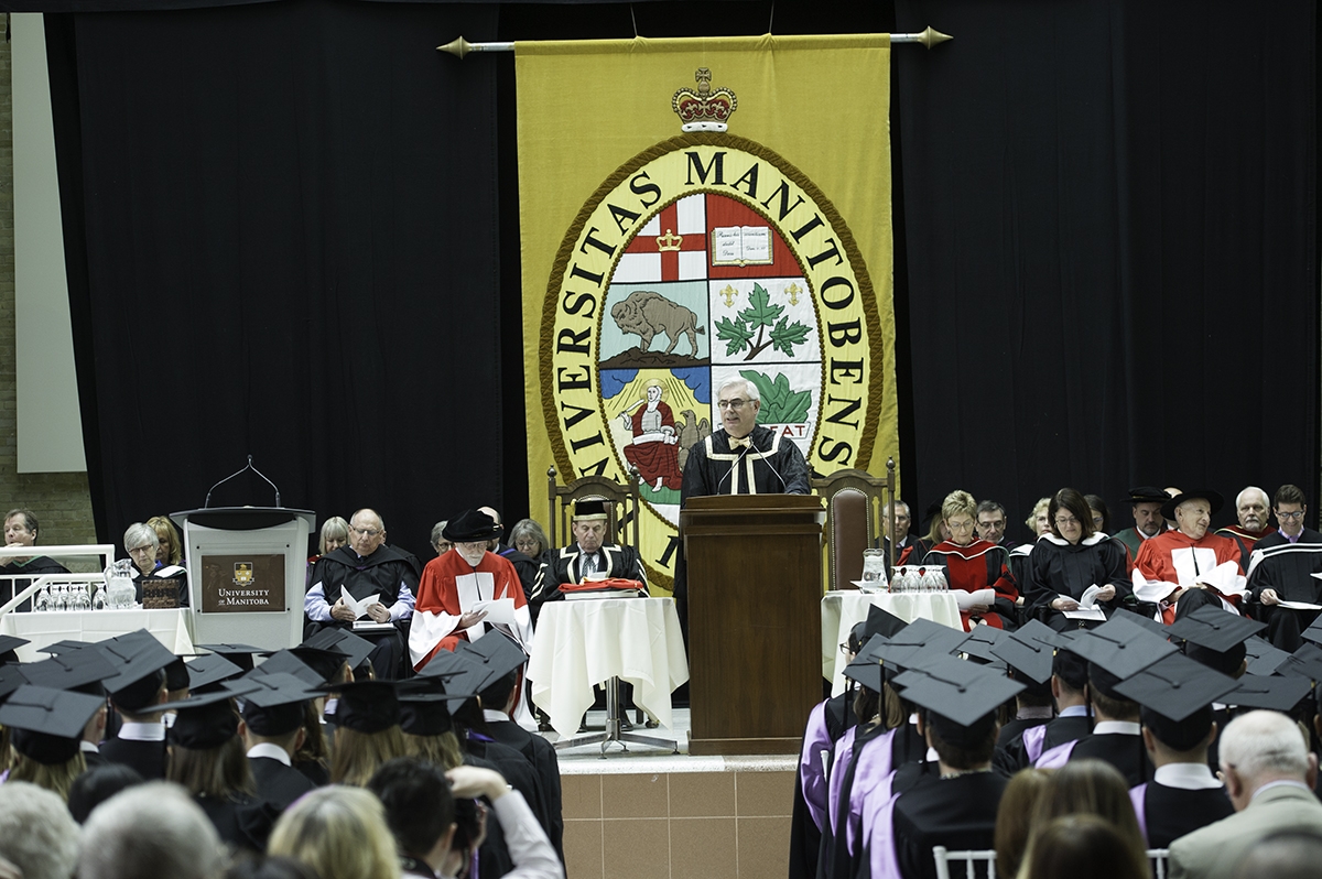 As Dr. Rady took his seat, Convocation resumed and Chancellor Harvey Secter conferred degrees on the 106 new medical graduates, who became doctors following the recitation of the Hippocratic Oath.