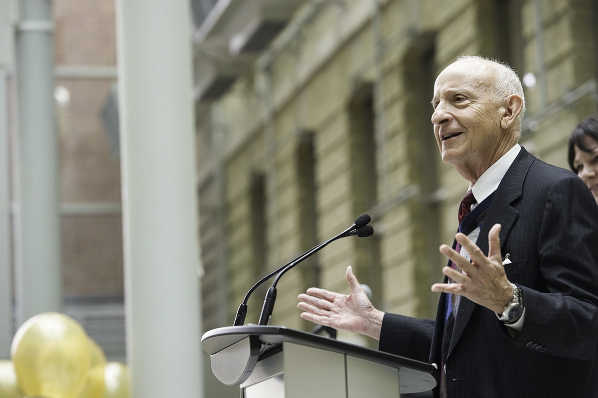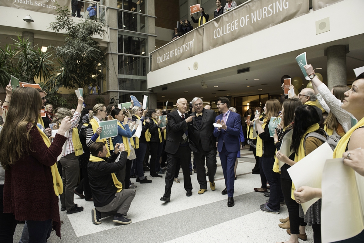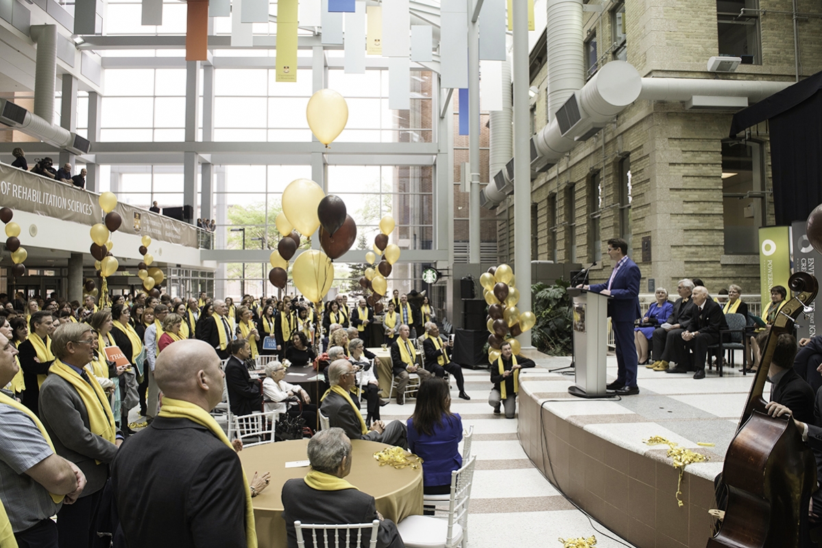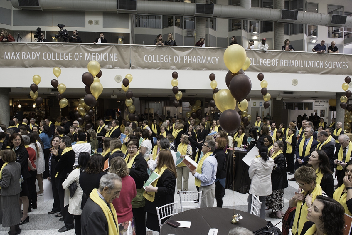 In the afternoon, alumni, students, faculty, staff and friends packed the Brodie Atrium for a surprise celebration. Rady, his sisters and specials guests were greeted with a booming “thank you” and thunderous applause from the crowd.