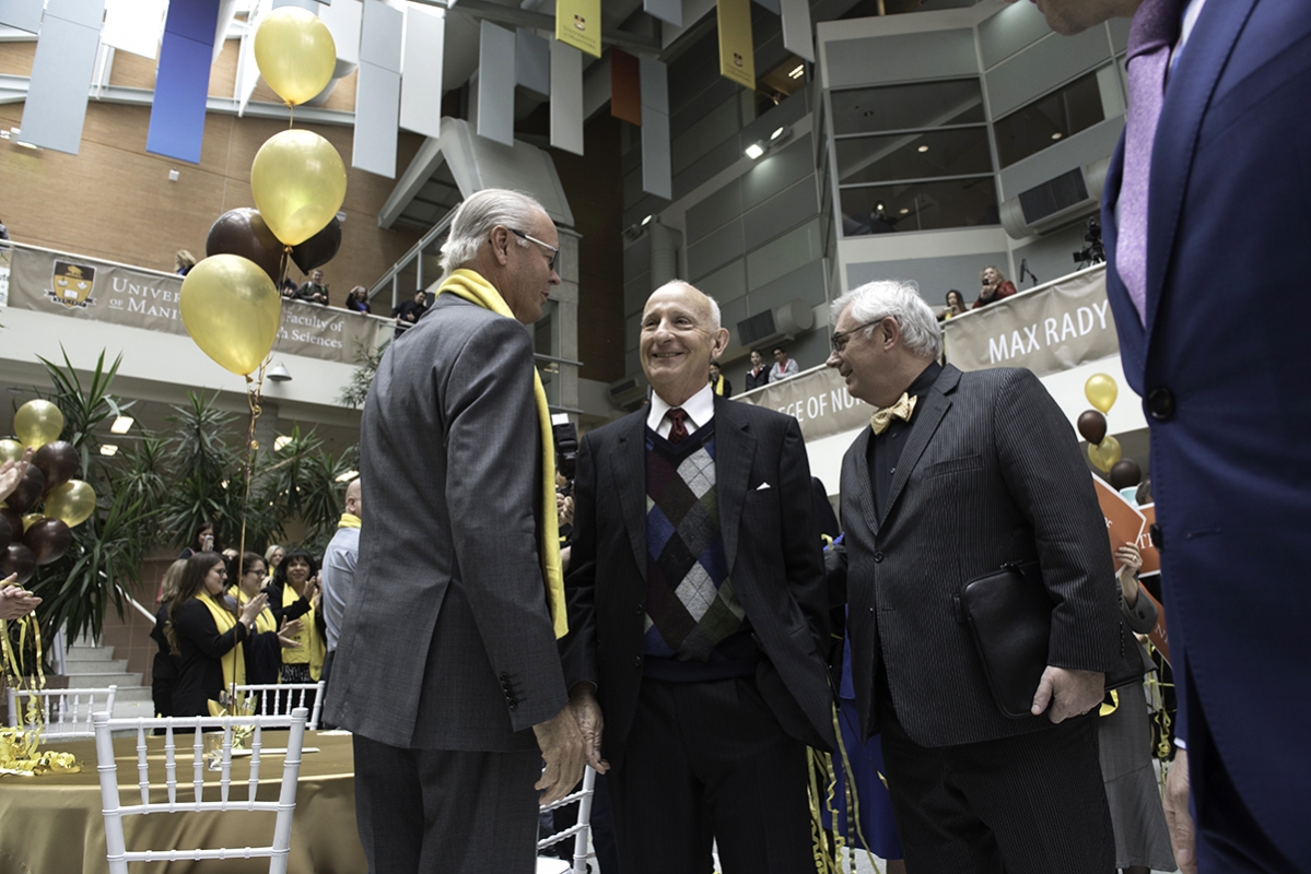 “It is my distinct privilege and pleasure to announce today that Dr. Ernest and Mrs. Evelyn Rady are gifting to the University of Manitoba’s Faculty of Health Sciences, which includes the Colleges of Dentistry, Medicine, Nursing, Pharmacy and Rehabilitation Sciences, $30 million in support of students, research, and places and spaces,” Vice-President (External) John Kearsey told the crowd.