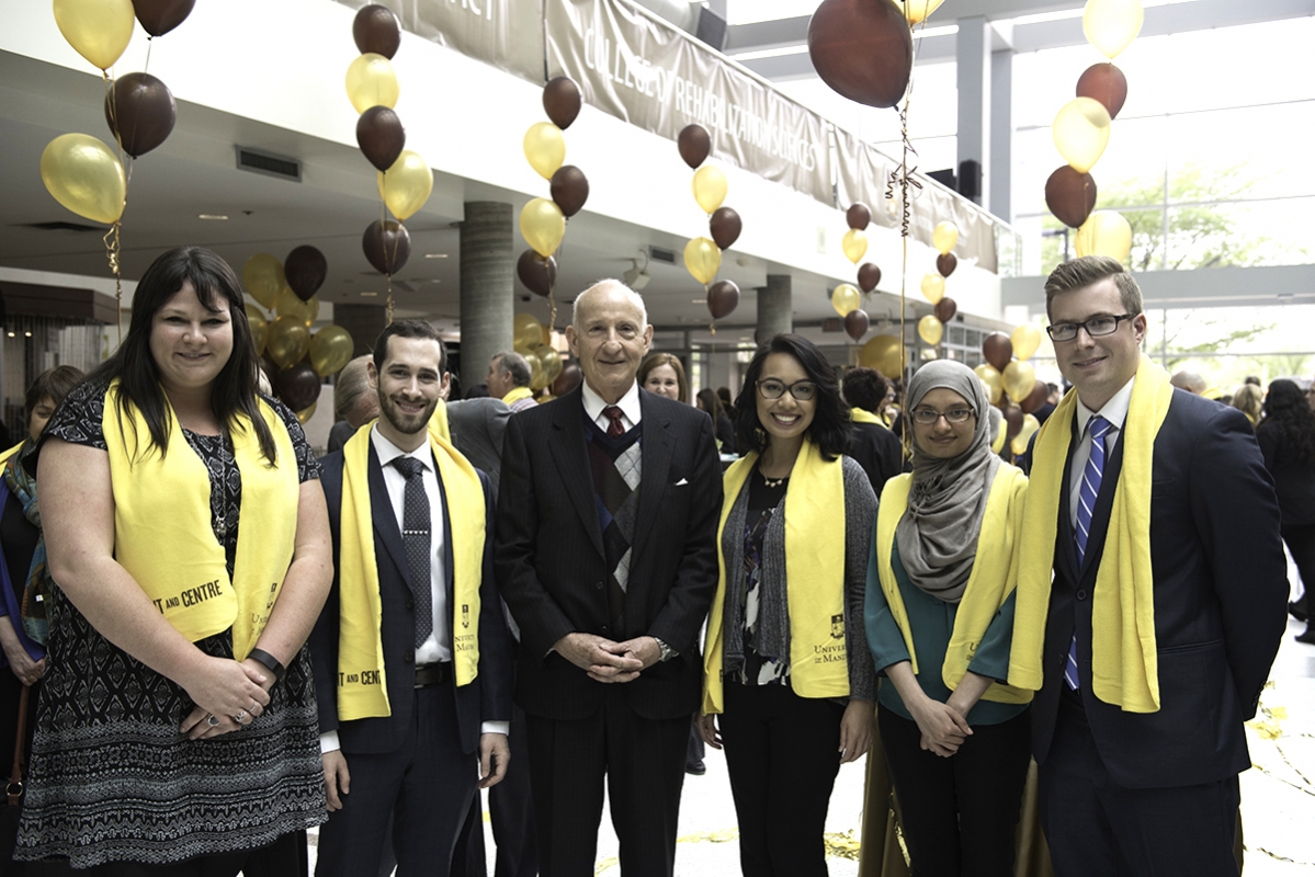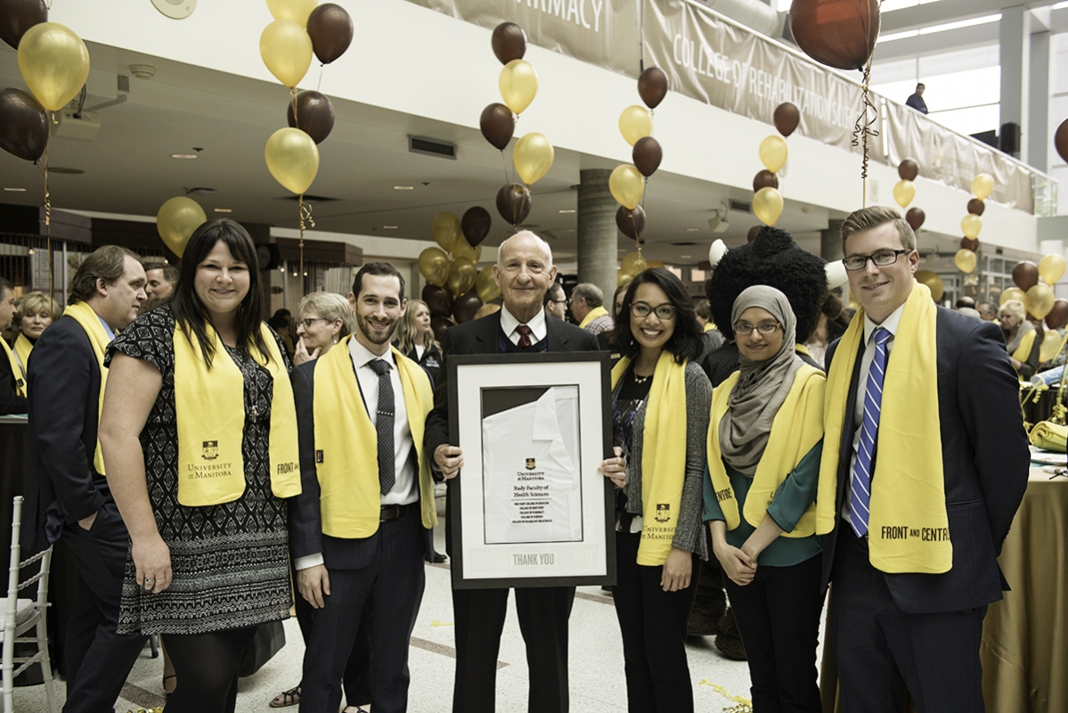 Student representatives for the five colleges then thanked Rady and his family and presented him with an official Rady Faculty of Health Sciences lab coat.