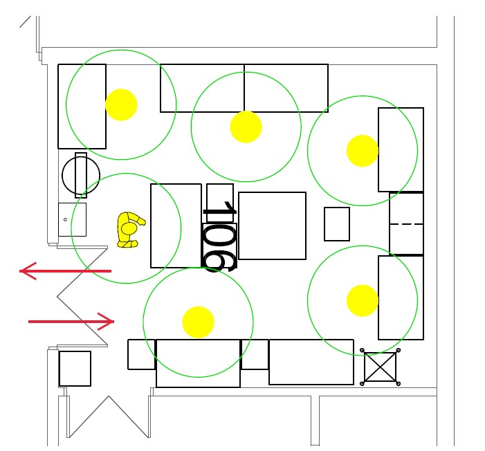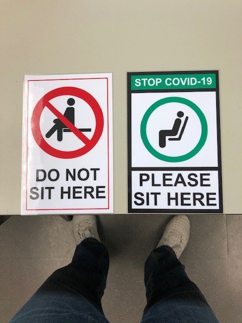 To maintain the proper social distances guidelines, seating arrangements have been made accordingly. “Sit here” and “Don’t sit here” placards are posted on seats, and limited seating drawings and seating capacity notices are posted by the entrance doors of the classrooms.