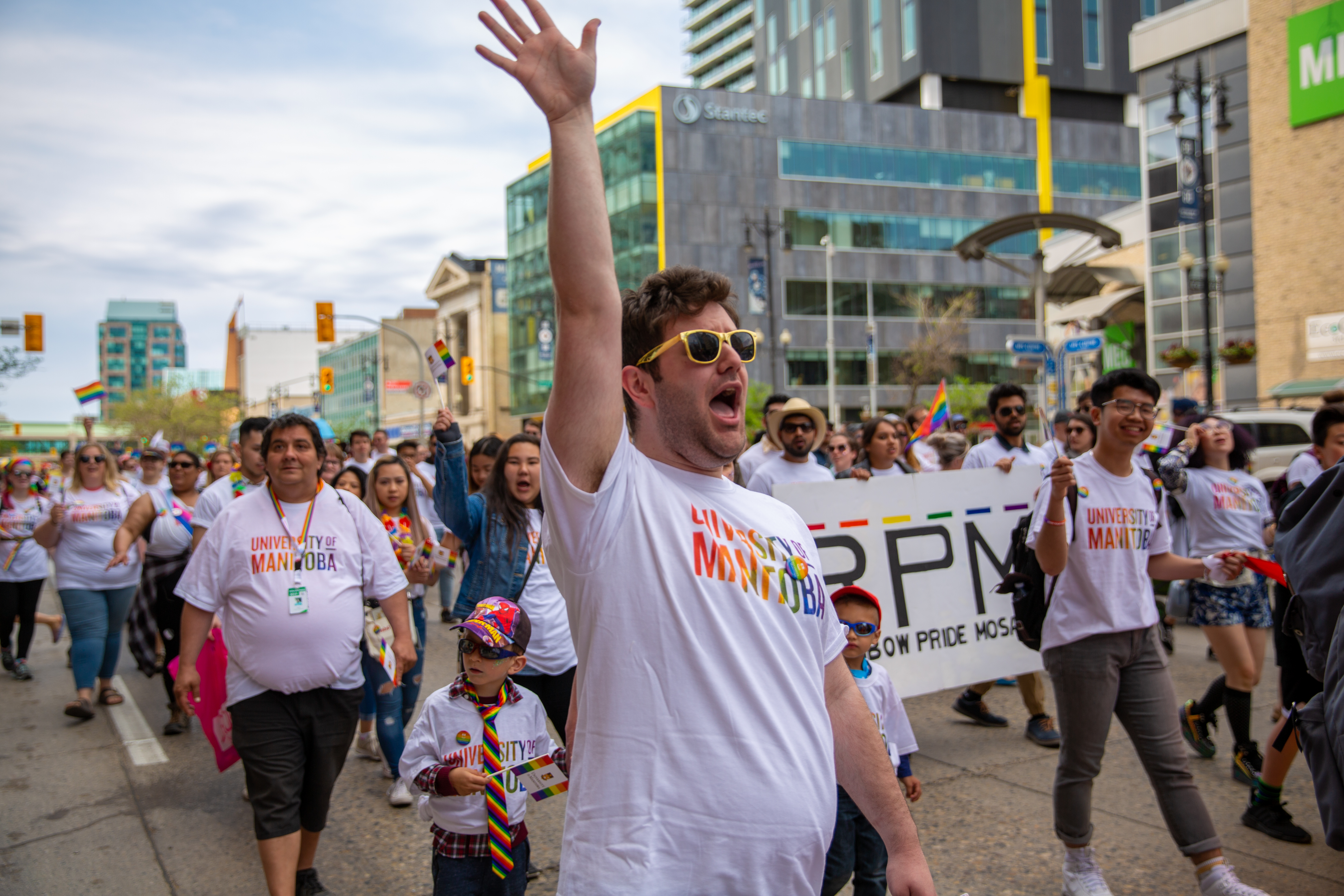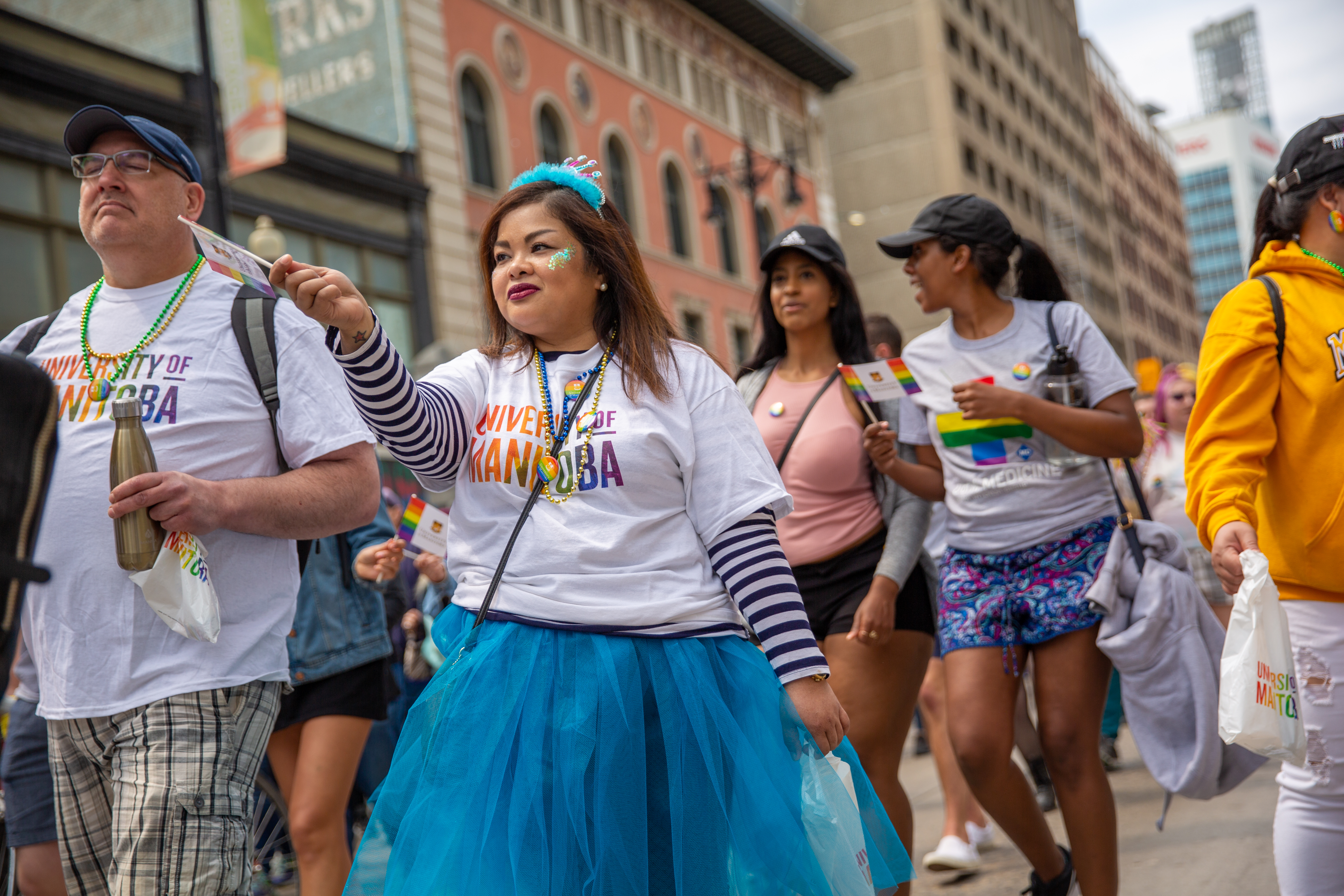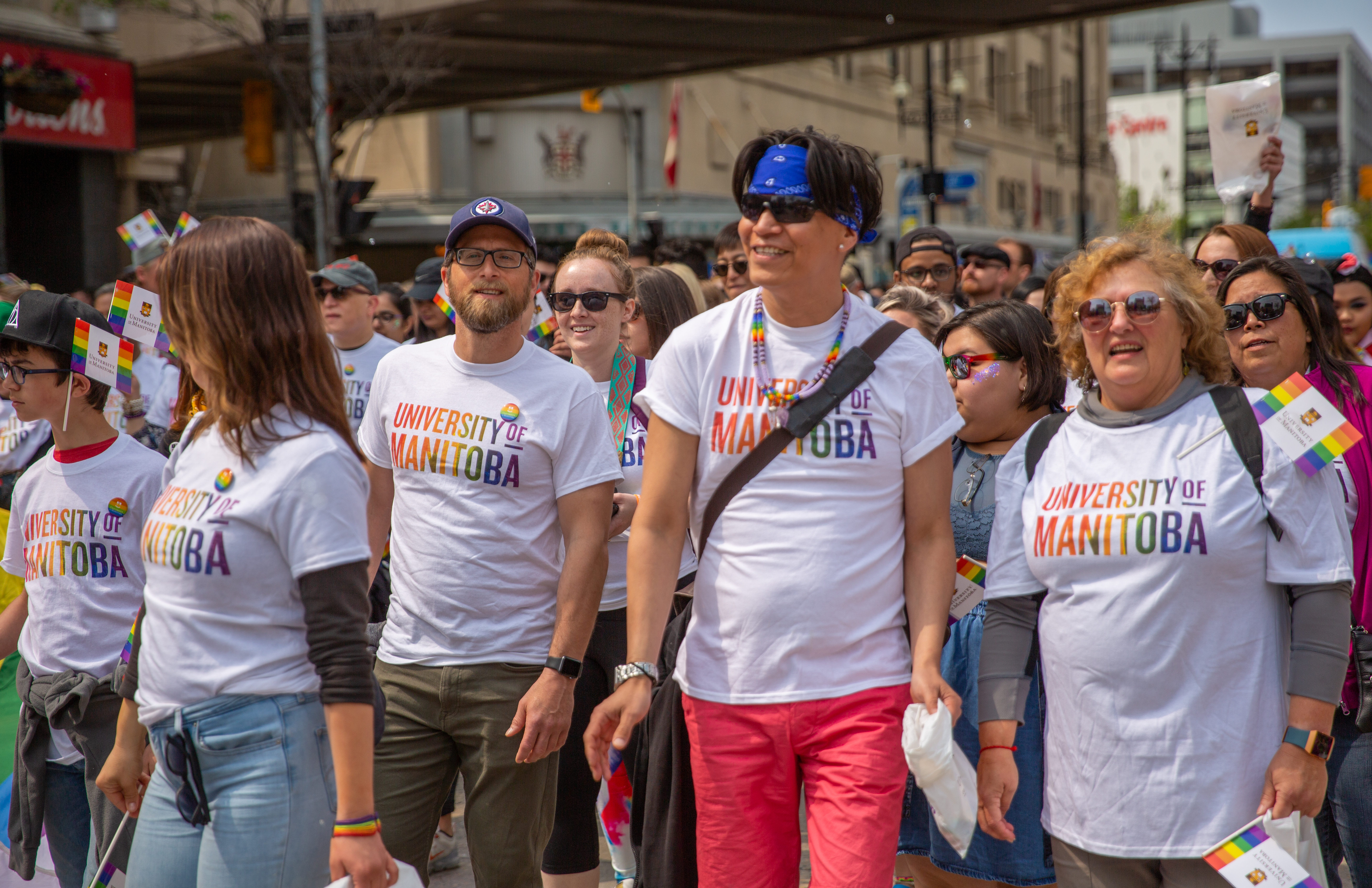 In its fourth year as a Gold Level sponsor of Pride Winnipeg, U of M’s largest walking group to-date was represented by members of the UMQueer Committee, U of M students, faculty, staff, Mini U Programs, Bisons (and Billy of course), Rainbow Pride Mosaic, the LGBTTQI* Interest Group from the Rady Faculty of Health Sciences, UMSU and many other friends and family.