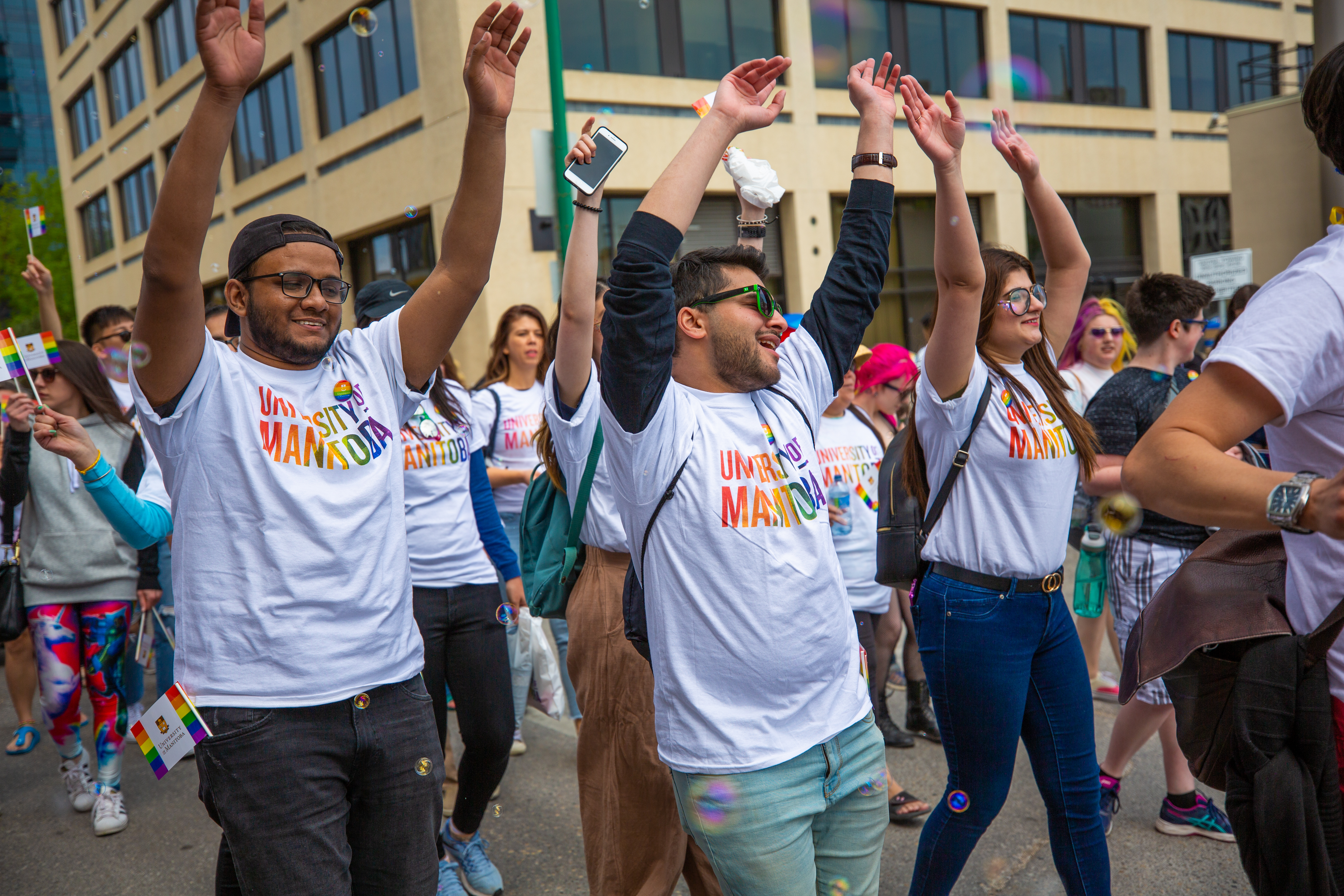 On Sunday, June 2 with thousands of onlookers, more than 300 members and allies of the 2SLGBTQ+ community proudly marched with the University of Manitoba’s parade float at the 32nd annual Winnipeg Pride Parade.