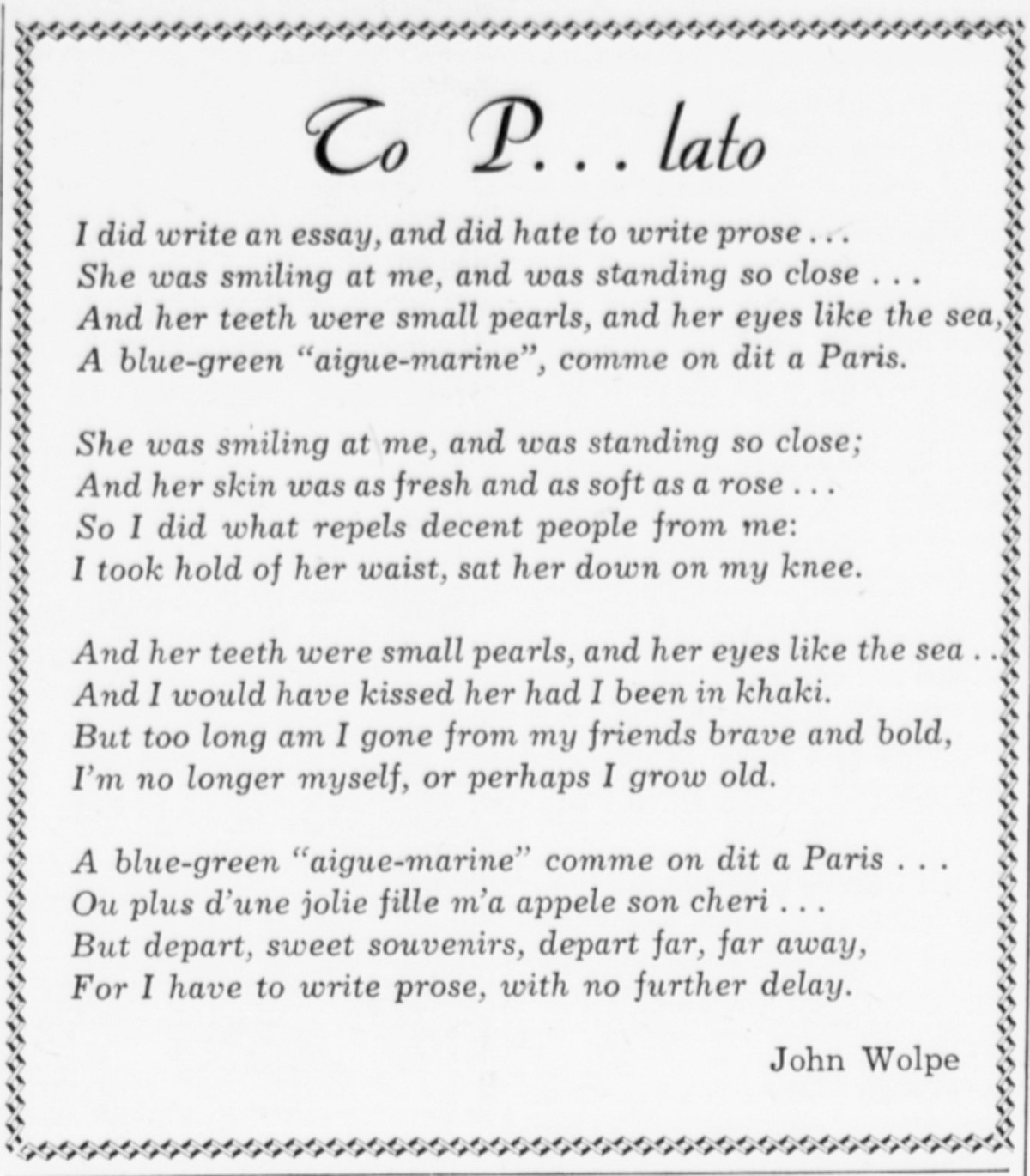 By all accounts, Hans Wolpe led an active life as a UM student. He gave talks to service clubs around Winnipeg and spoke on radio shows about his war-time experiences. He also wrote poetry for The Manitoban and articles for the Creative Campus, a student literary magazine. His classmates were astonished to learn that not only was he a poet, he was also a pugilist – he boxed at the YMCA and even headlined a bout against a former local boxing champ that drew hundreds of spectators.