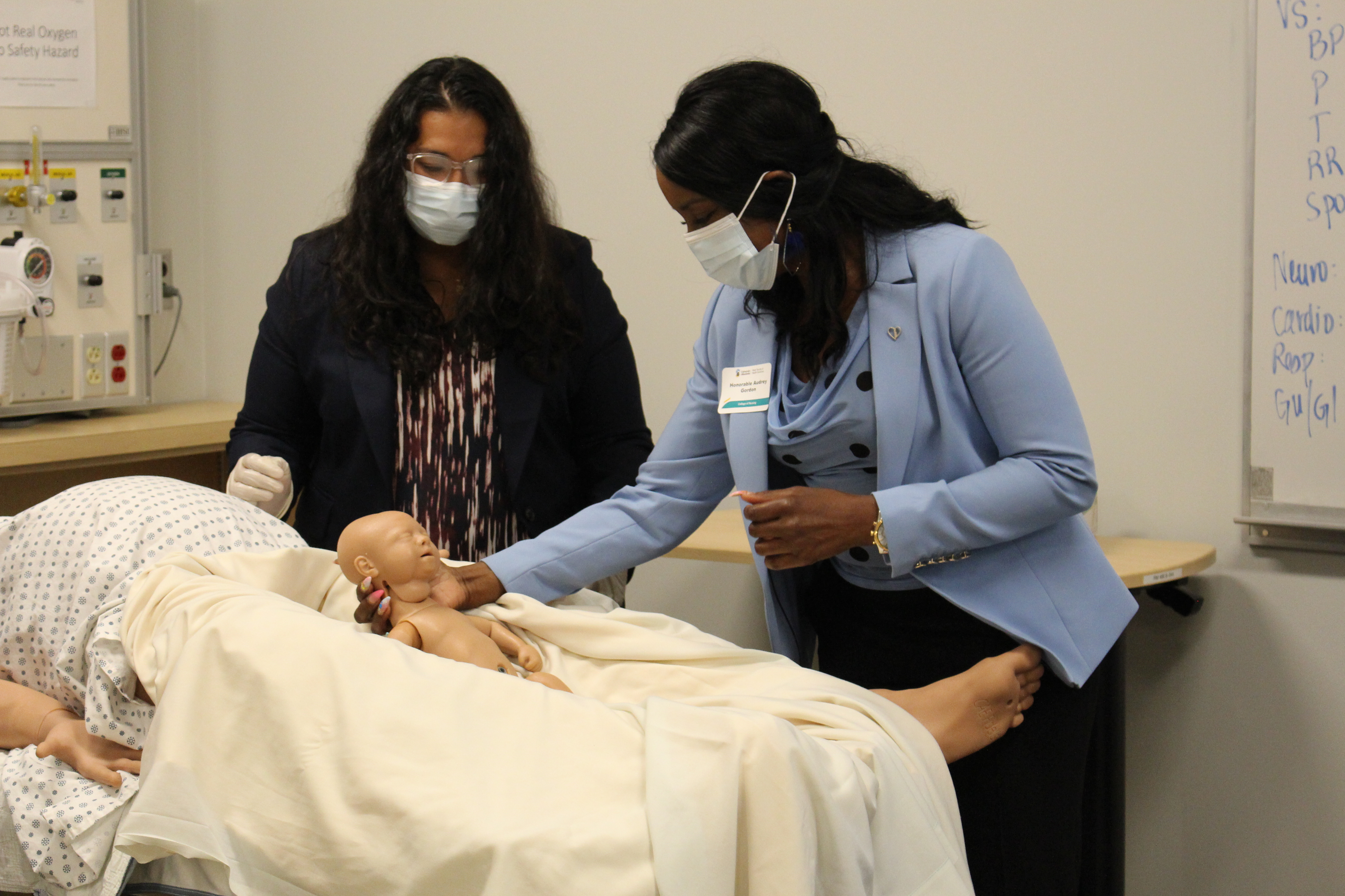 Class of 1972 alumna Dr. Jeanette Gris said the virtual reality-based learning looked exciting. “I was also very impressed with the number of manikins that are here in one room,” she said. “I think it’s an excellent way to ensure standardized application of skills amongst the students.”