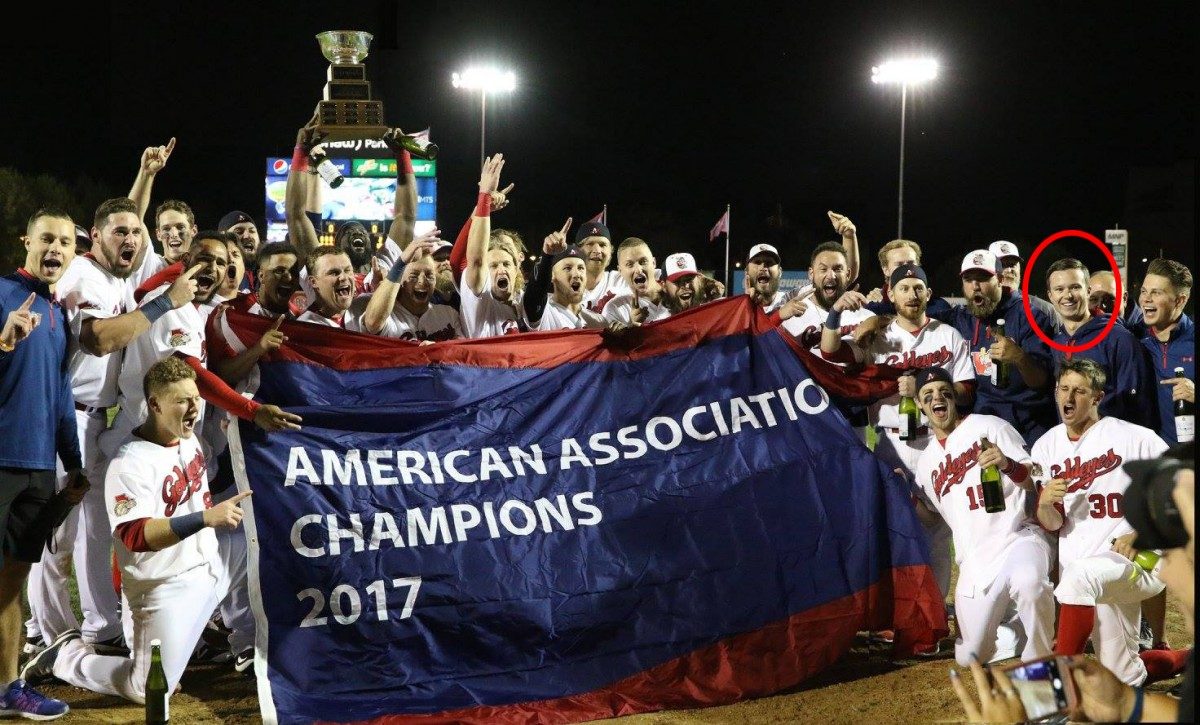 The U of M grad student had just spent his second summer as the Athletic Therapist for the Winnipeg Goldeyes baseball club, and the flowing bubbly was part of the celebration of the Goldeyes winning back-to-back league championship titles.