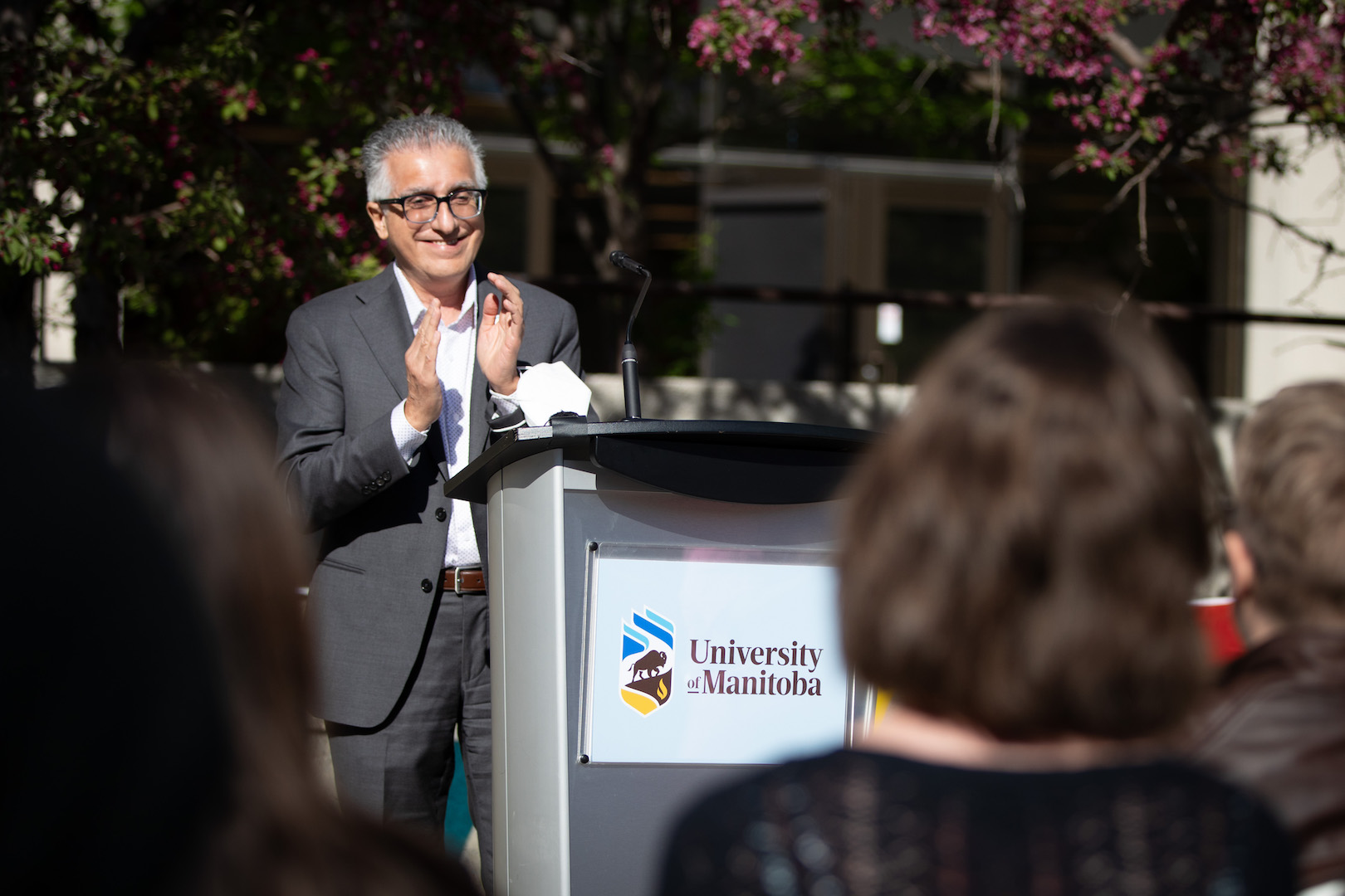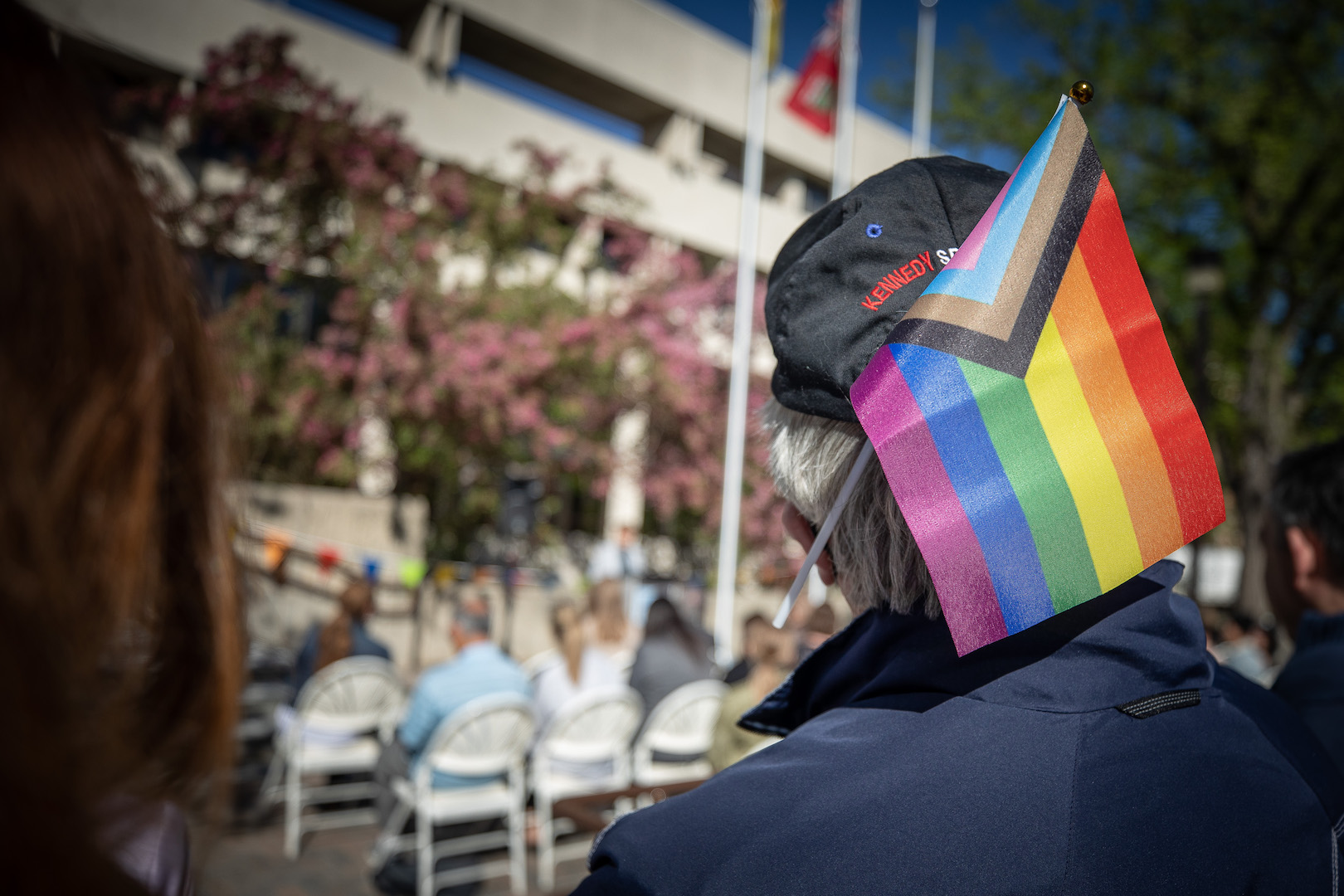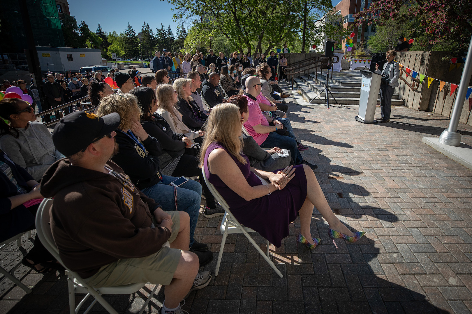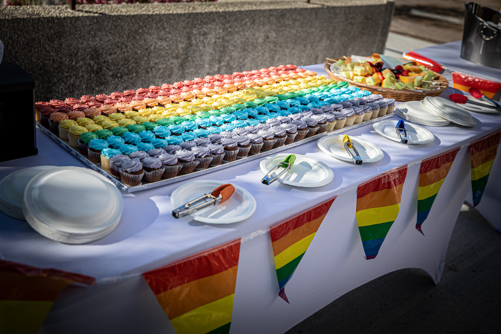 June 1 also also kicked off UM’s Pride Month celebrations, and the UM community gathered for the flag-raising ceremony in front of UMSU University Centre for cupcakes, fruit and to hear from speaker Dr. Fenton Litwiller (they/them), Professor in the Faculty of Kinesiology and Recreation Management and Chair of UMQueer.