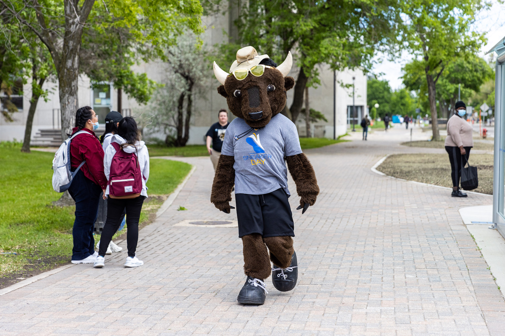 On June 14, UM staff, faculty and students celebrated Sneaker Day with Billy the Bison by getting active together — teams laced up their walking shoes to join the accessible cross-campus walk.