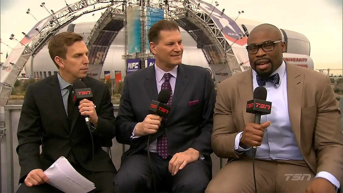 Israel Idonije (right) as part of TSN's Super Bowl panel