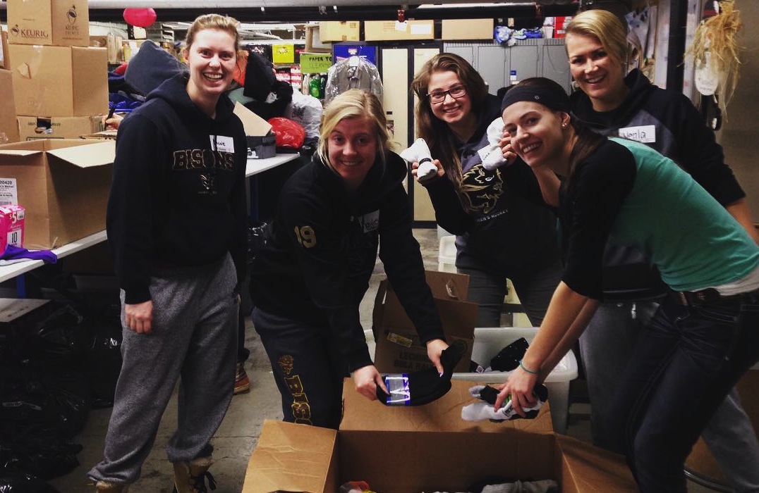Fifth-year women’s basketball forward Rebecca Potter has taken over the leadership for Bison student-athletes to be involved with Siloam Mission this year. Former Bison women’s volleyball player Lindsay Poggemiller-Smith drove the initial initiative in 2005, as she had been a volunteer at the Mission and was involved as staff afterwards.