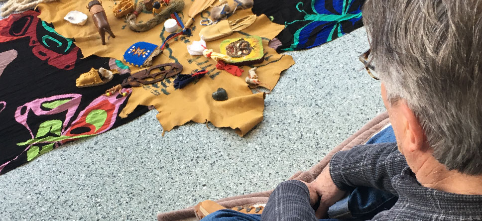 Facilitator Kathi Camilleri set the scene for the half-day workshop, “Building Bridges Through Understanding the Village”, by laying out a blanket and adding objects symbolizing Indigenous life in pre-contact Canada.