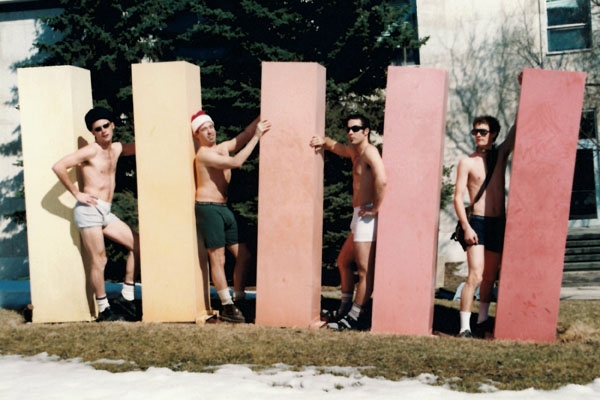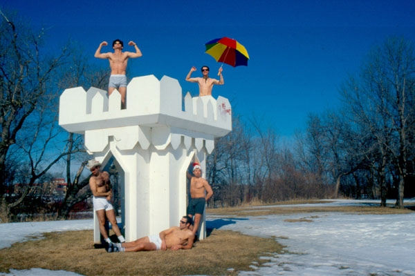 Although it has been widely debated, the group perhaps reached its zenith (or nadir) with ‘The Boys of Landscape’ (1999) a self-mocking Coffee Haus multi-media slide show of ‘beefcake’ images set in various locations across the University of Manitoba Fort Garry Campus. This seminal event captured the sense of fun, humour, and dedication to high quality images capturing the ‘genus loci’ of important campus spaces that encompassed the group’s ethos, and ultimately the impetus for this scholarship.