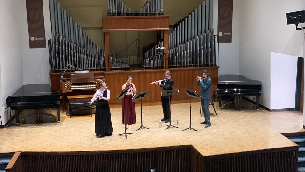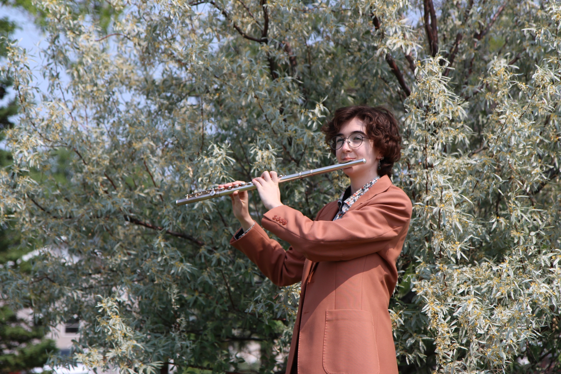 Those two accolades came right before COVID-19 shutdowns began. Many music competitions were scrapped while COVID was at its height, but as soon as the world began to open back up, Cal went right back to competing. Later, in 2022, as competitions began opening back up, her performance at the Winnipeg Music Festival resulted in Cal being recommended , at the senior woodwind level for the Associated Manitoba Arts Festival, the provincial competition reserved for the best performers, and this past year, Cal was one of the finalists for the Desautels Faculty of Music’s Genser Competition!
