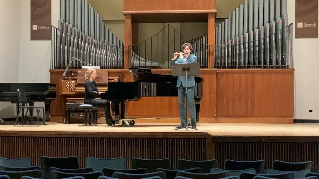 Two years before she began university, Cal met Laurel Ridd, a Desautels Faculty of Music major practical study (MPS) instructor in flute, at the International Music Camp, and joined Ridd’s studio to prepare for her goal of studying music at the university level.