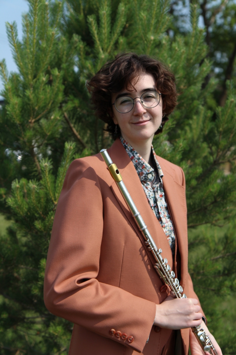 After her successful flute audition for the Desautels Faculty of Music, Cal received a number of scholarships, including the Marcels A. Desautels Undergraduate Scholarship, repeatedly, the Berchman Loh Scholarship in Music, and the Reg and Anne Hugo Memorial Fund Scholarship in Music. Cal also immediately immersed herself in ensemble work, performing with the University of Manitoba Wind Ensemble, various small chamber ensembles, including flute quartets, trios and duos, and Collegium Musicum, an ensemble that focuses on early music. Ever the committed collaborator, she also partnered up with fellow students to perform music composed by other Desautels students.
