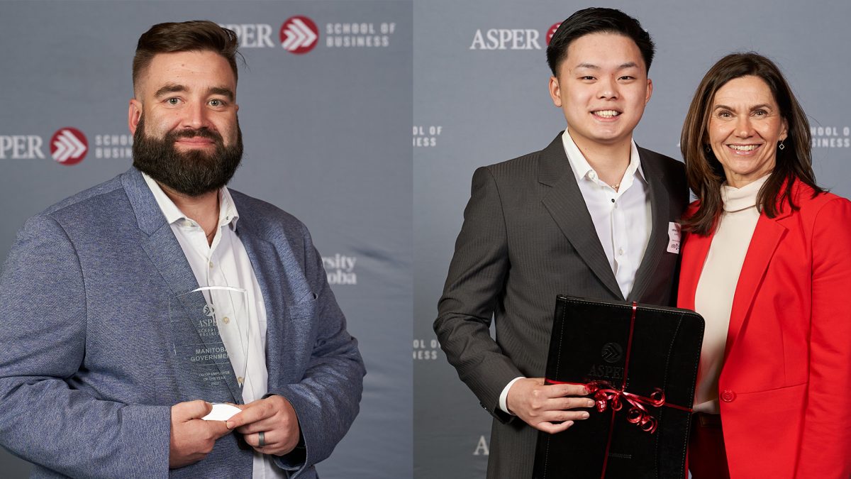 Nominated by Asper co-op student Dharmil Patel, the Government of Manitoba is the 2023 Co-op Employer of the Year. Donna Sulz [BComm(Hons)/96], Director of Total Rewards and Travis Hoemsen, Director of Talent Acquisition from the Public Service Commission, accepted the award.
