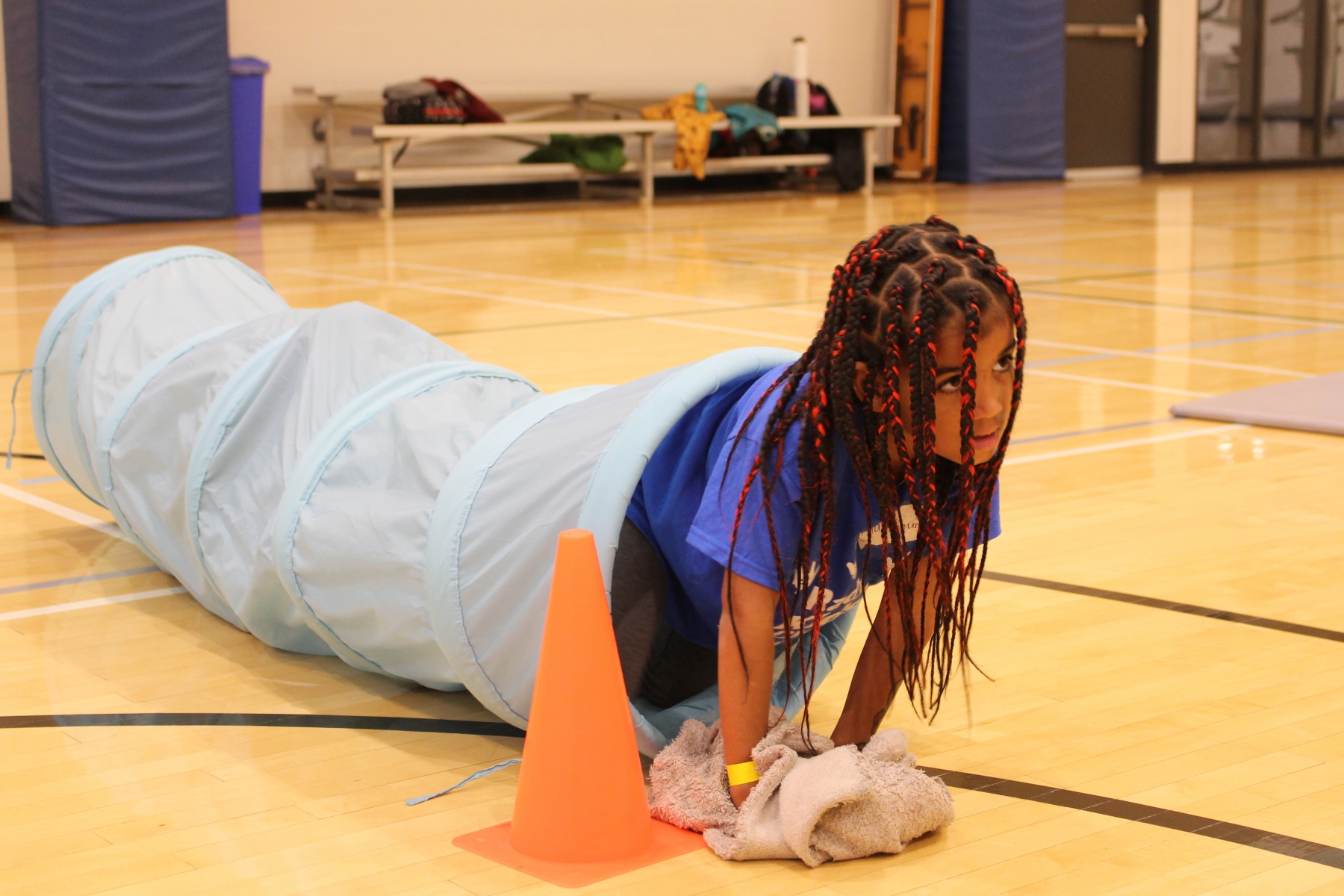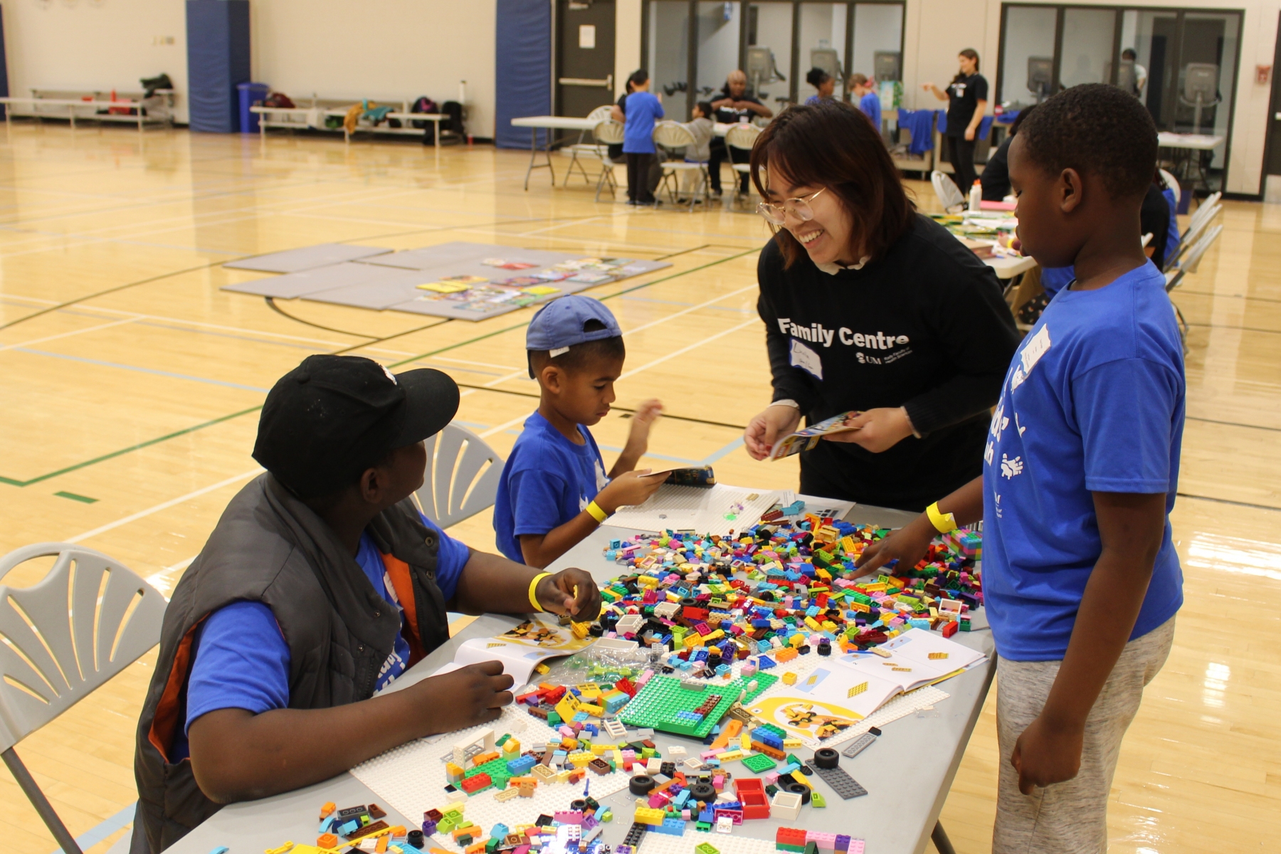 Several activity stations are set up in the gym for the kids to choose from, which range from crafts and Lego to soccer and an obstacle course. Healthy snacks are also included.