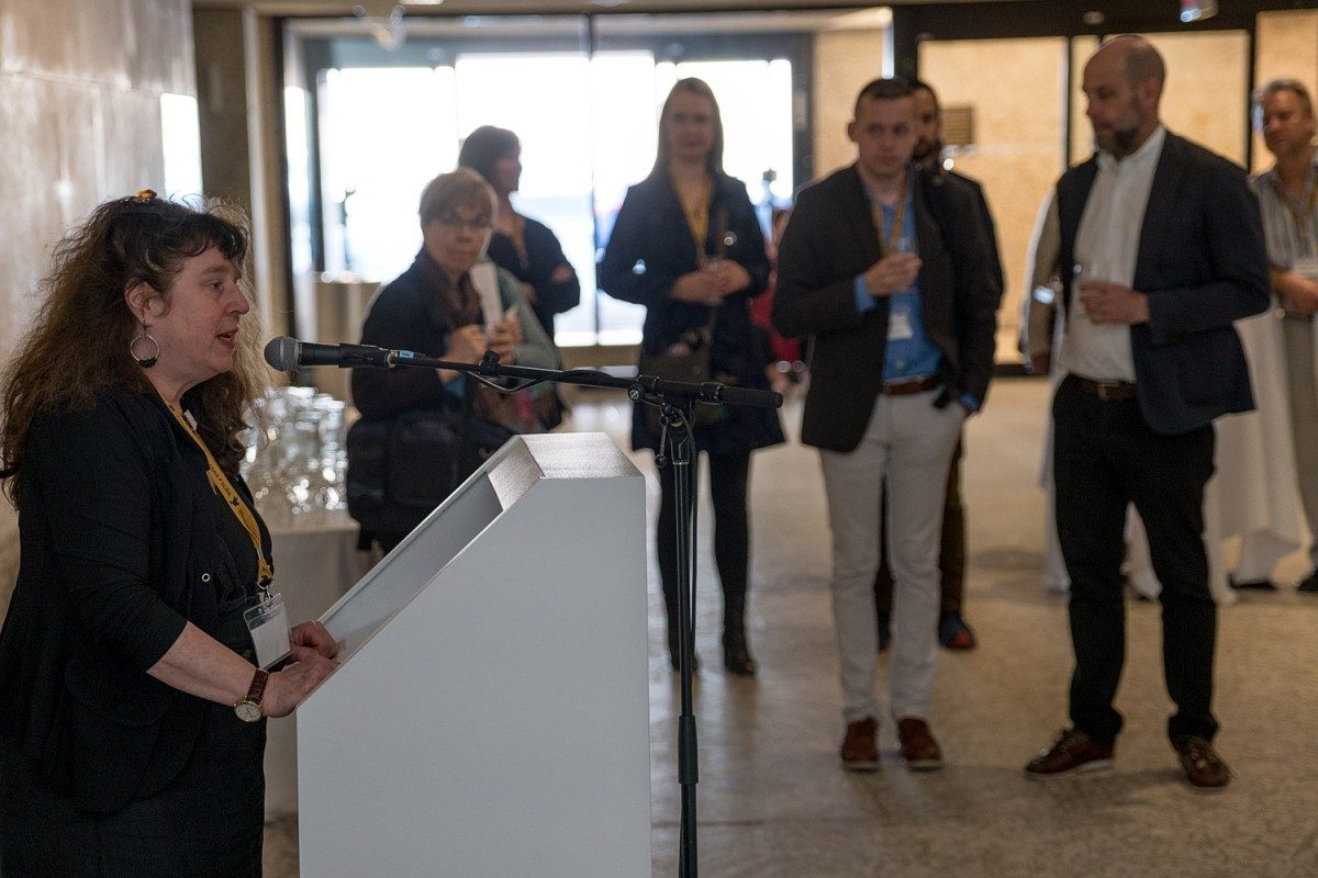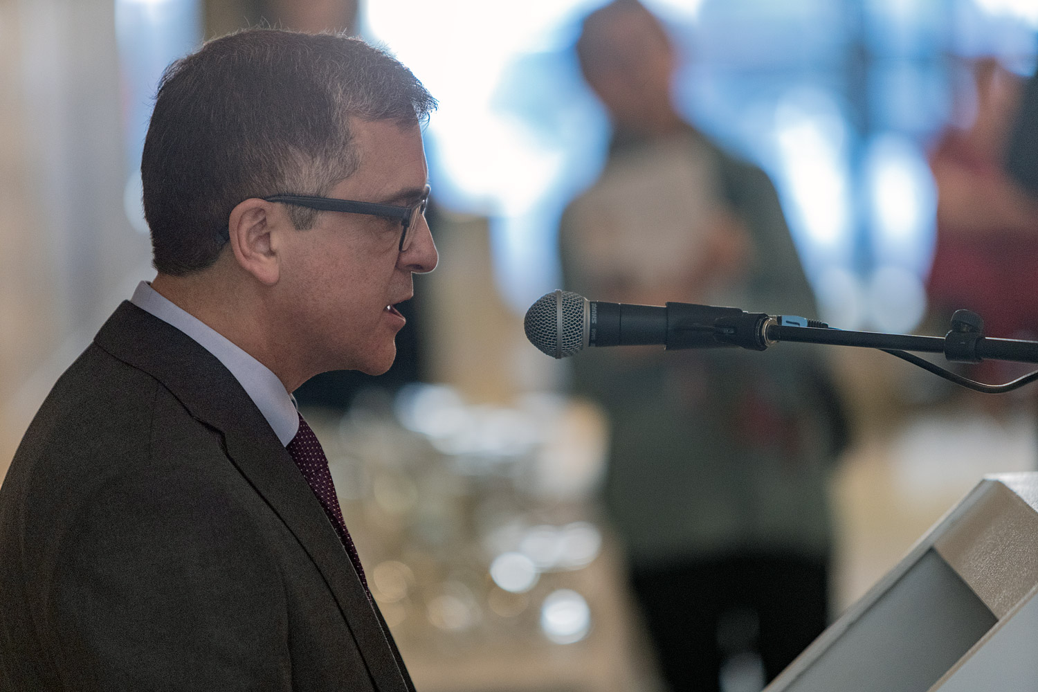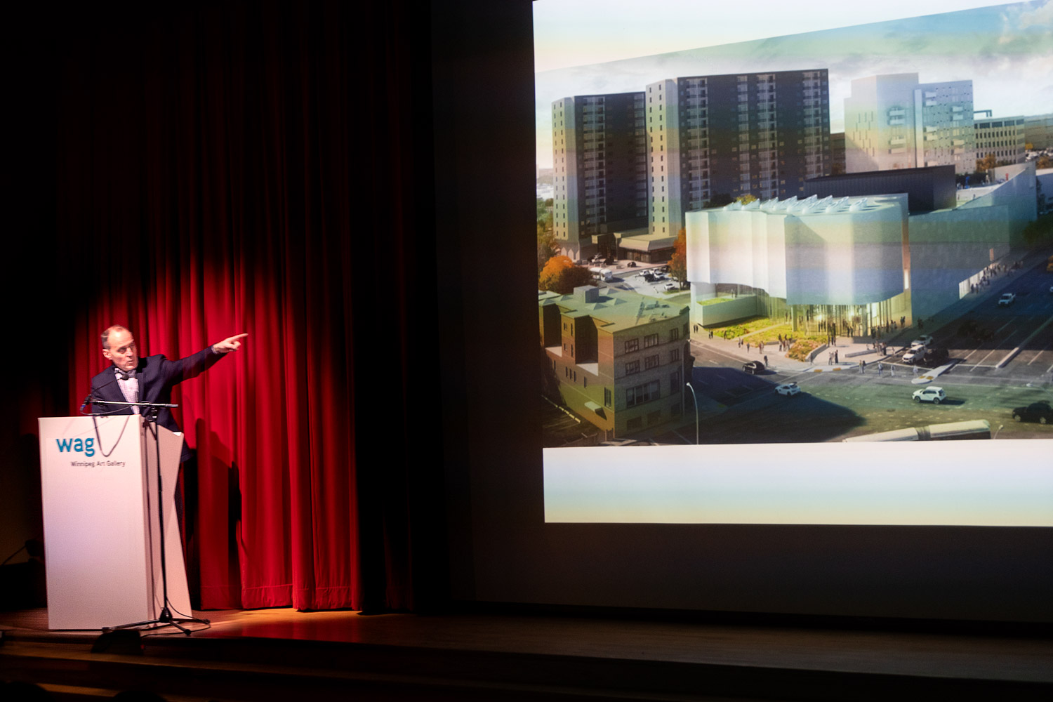 Prof. Black offers welcoming remarks at the WAG during the opening of a Canadian Society for Education Through Art event, a conference held in venues throughout the city.