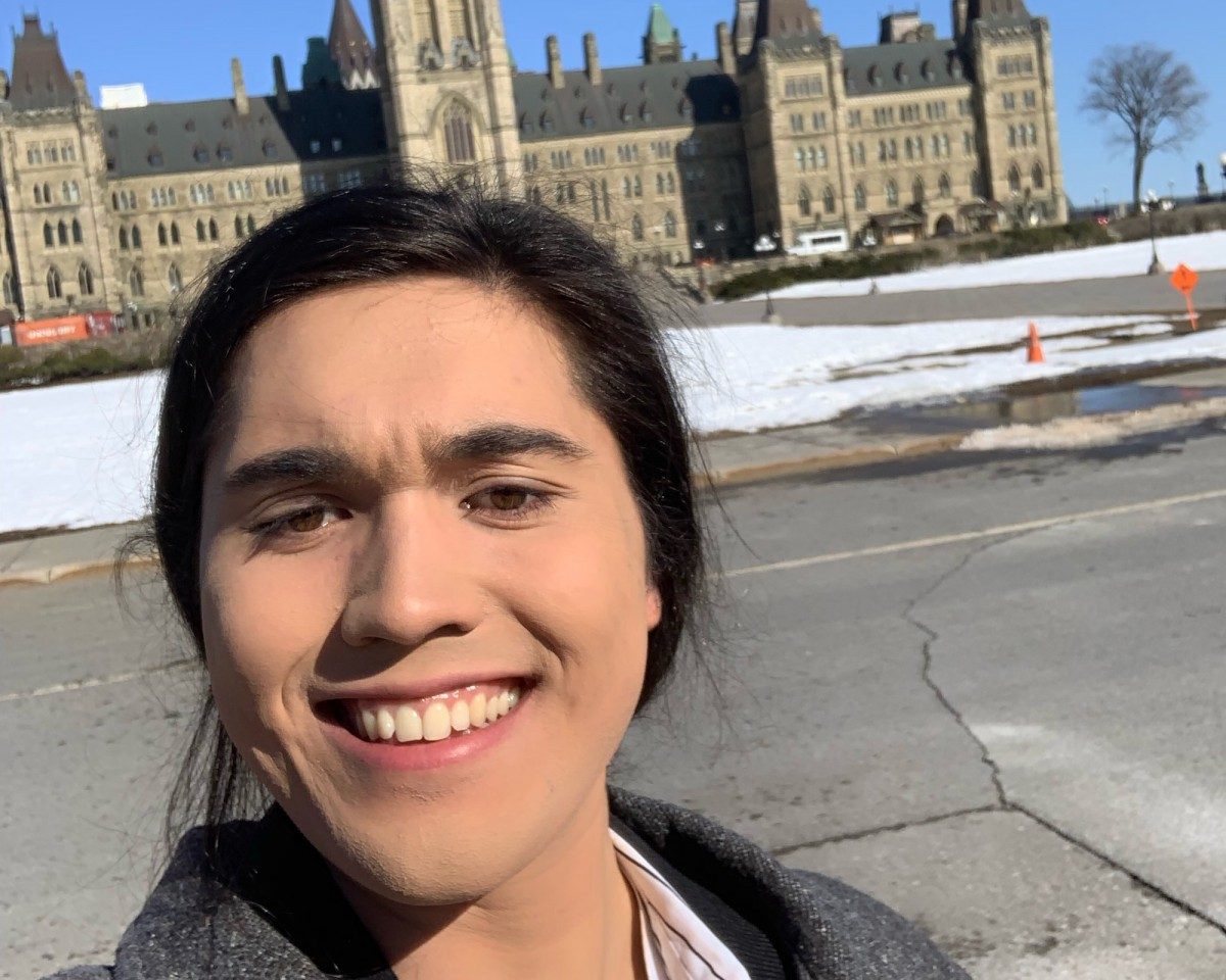 Phoenix Nakagawa in front of the Parliament Building during her visit to Ottawa