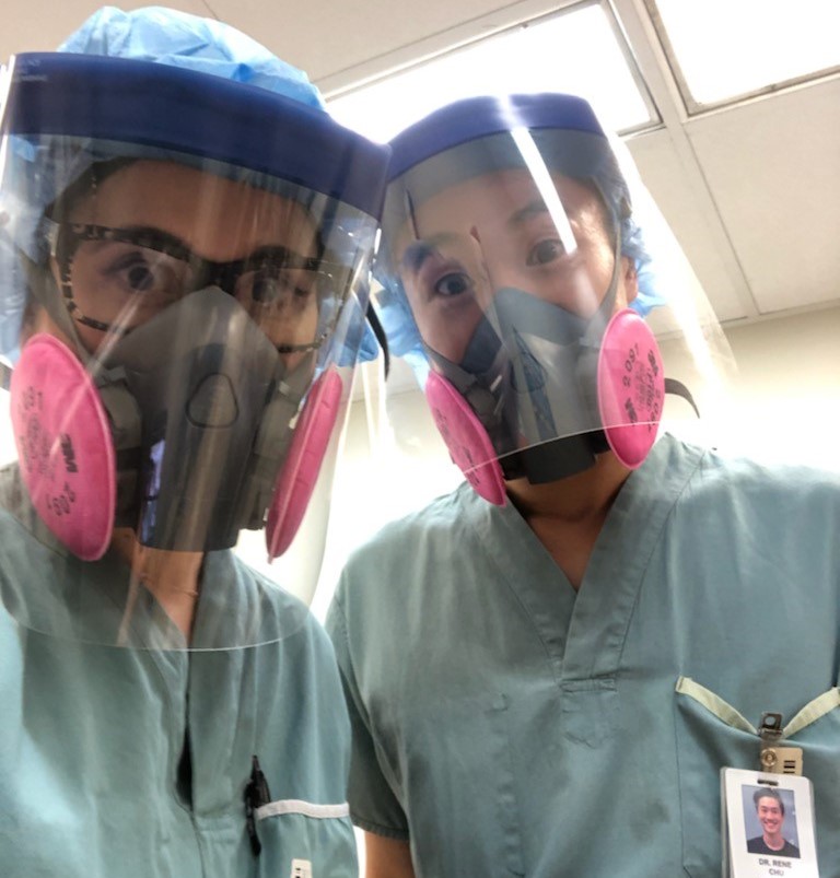 DR. JULIE PFEFFER (L) AND DR. RENE CHU, PROFESSORS IN THE DEPARTMENT OF RESTORATIVE DENTISTRY, ARE VOLUNTARILY PROVIDING CARE AS MEMBERS OF THE UM EMERGENCY DENTAL TEAM.