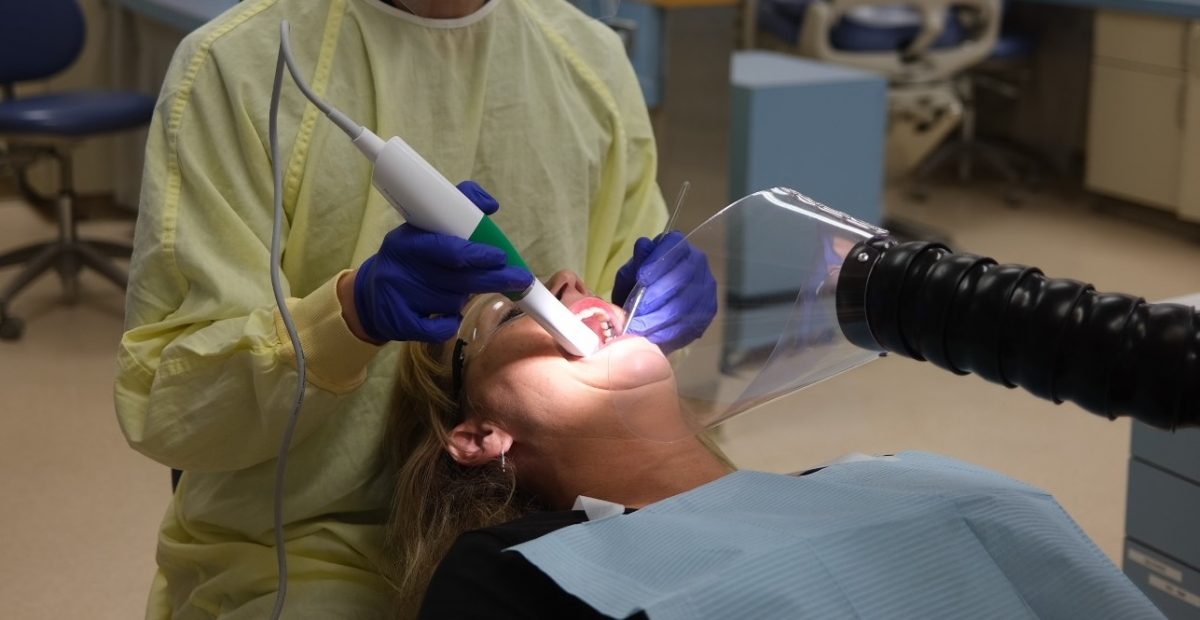 Instead, the students will use a handheld wand connected to a computer to scan the teeth and gums of a patient. A computer program then creates a 3D model of the mouth that will be used by a lab to develop a crown.