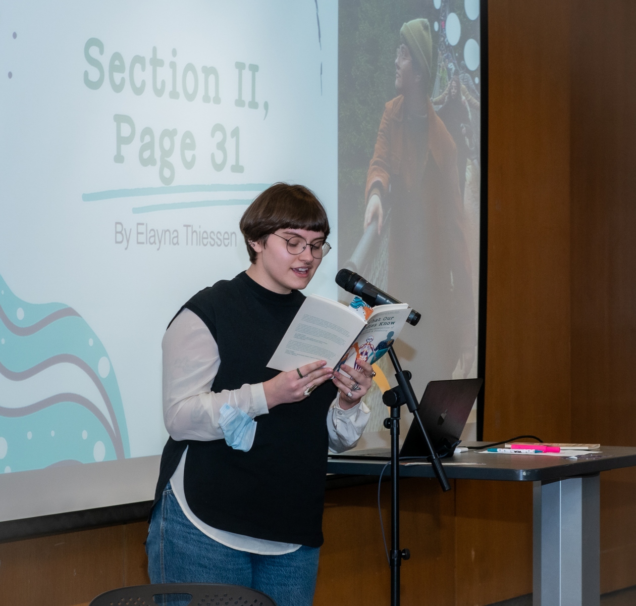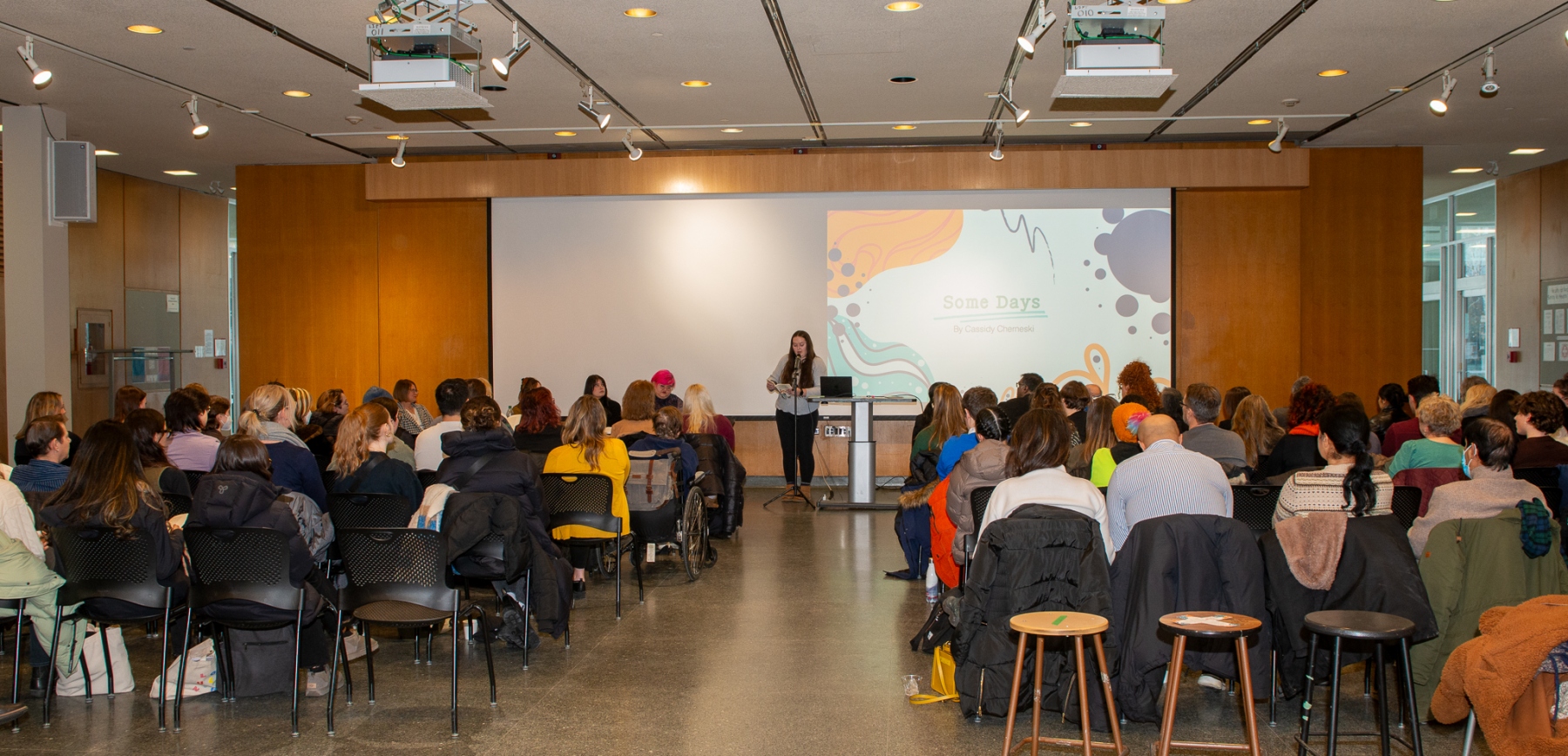 Environmental design student Abbey Bellisle was part of the team who brought the book to life, “I have read the essays countless times over the past year, and was moved each time. It was very special to meet the authors and hear them share their stories in person.” Bellisle is hoping to pursue a masters’ degree in interior design or architecture and noted that this experience helped “open her eyes to disability.” She added that, “There is no excuse for a lack of accessibility in 2024. Courses like WOMN 2540 and this anthology project can aid in educating a future designer, like me, to make thoughtful and informed choices when it comes to accessibility in design.”