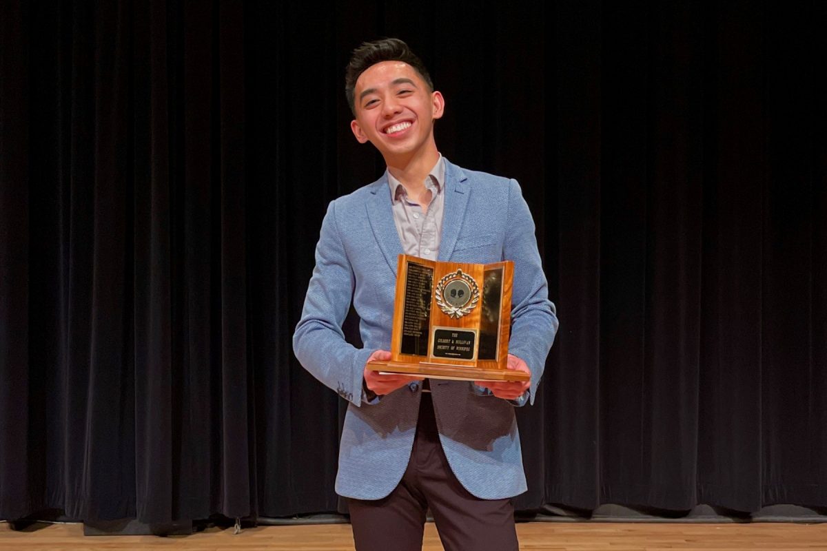 While Onello may have been shocked at his win, it came as no surprise to Donna Fletcher, whose students always do well in the category. In the past few years, alone, Fletcher’s students Sarah Luby, Julia Ulayok [Davis], and Claire Wright have all taken home the Gilbert & Sullivan Society Trophy.