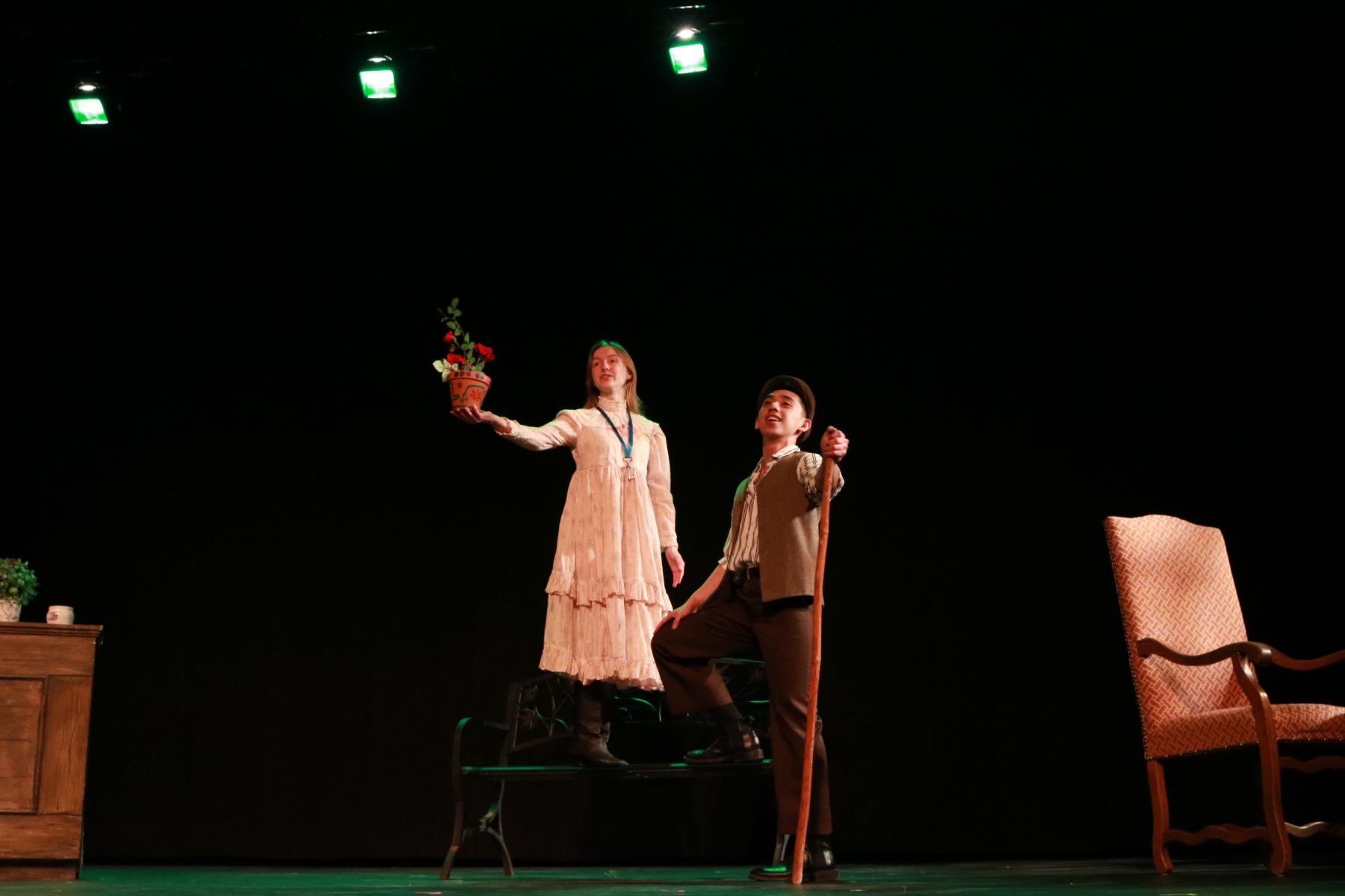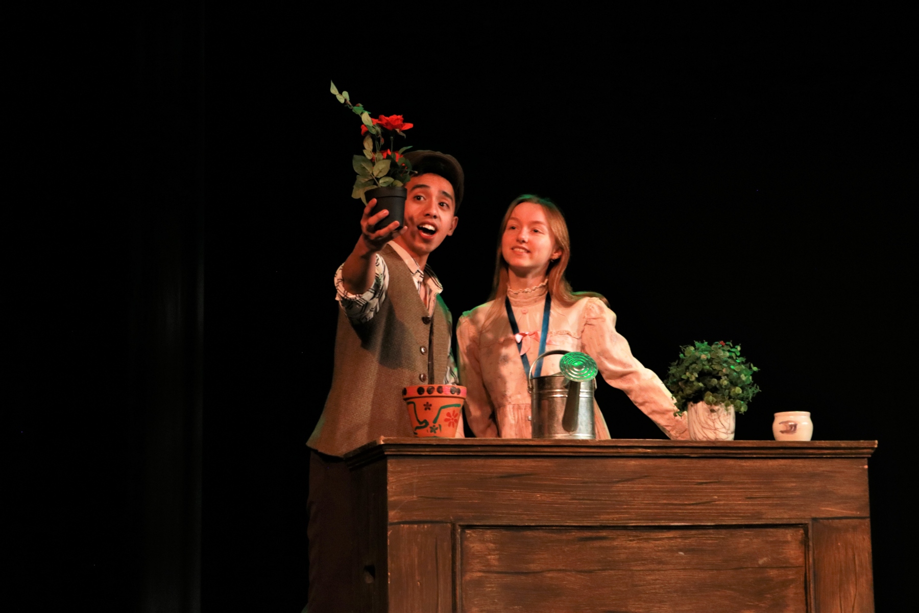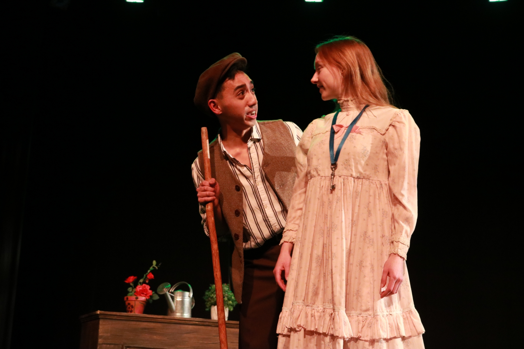 Onello was thrilled to have been the recipient of the Gilbert & Sullivan Society Trophy, and the runner-up for the Rainbow Stage Trophy, but there wasn’t much time to sit down and take it all in. He was in the middle of final rehearsals for the UM Musical Theatre scenes production Love Thy Neighbor, where, in addition to his work with the full ensemble in scenes from Oklahoma!, Mamma Mia, and Love Thy Neighbor, he gave a showstopping turn as resident groundskeeper Dickon from The Secret Garden, performing “Wick” alongside Sophia Cap’s lovely performance as the uprooted orphan Mary. In addition to his phenomenal singing, his acting and theatricality was superb.