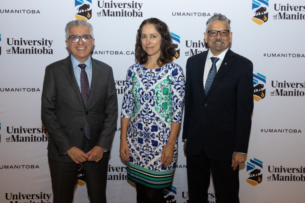 UM President and Vice-Chancellor Michael Benarroch, Dr. Meghan Azad and VP (Research and International) Dr. Mario Pinto, pictured at the Steacie Prize award ceremony.