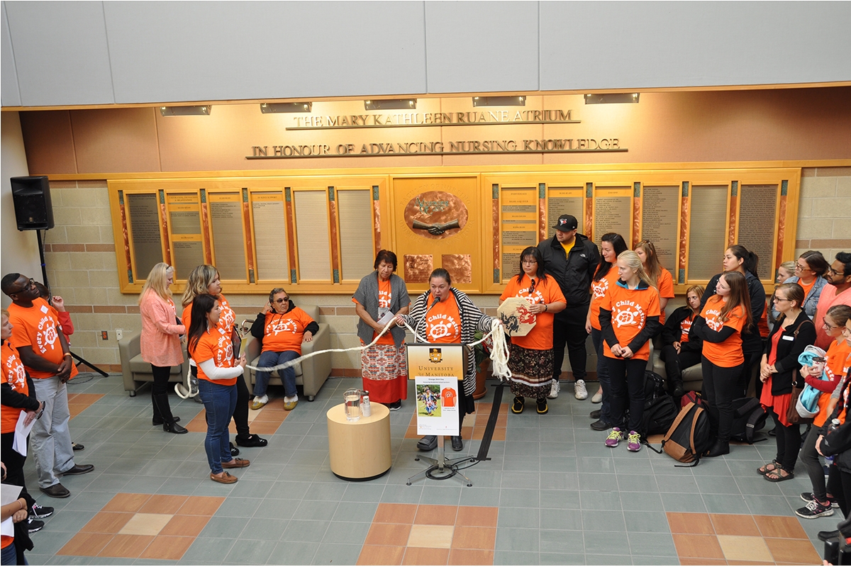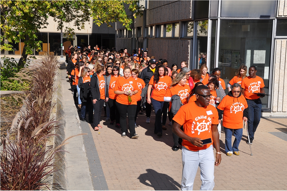 Every Child Matters – Orange Shirt Day, is an event conceptualized by the Truth and Reconciliation Commission (TRC). More than 200 people walked from the Helen Glass Centre for Nursing, finishing at the National Centre for Truth and Reconciliation (NCTR). At the end of the walk, nursing students delivered a pledge to the NCTR.