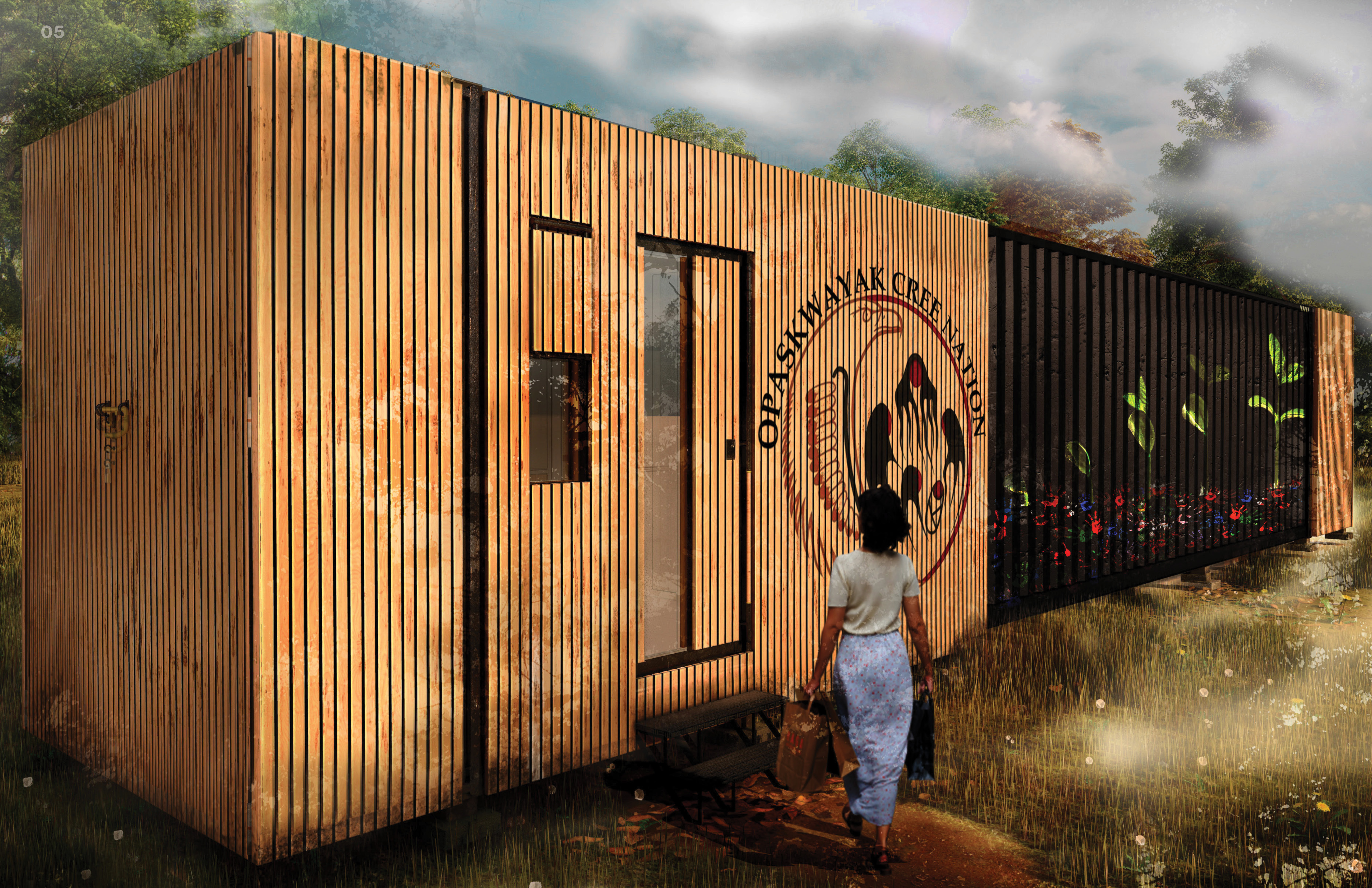 The students prepared a dossier including a research report and a design project focused on nutrition, economics, feasibility, adaptive reuse, and placemaking. The group engaged Stephanie Cook to help establish the parameters and provide feedback. Together, the students designed a container farm called Kistikêwin /Farming/ Container for the year-round production and distribution of fresh vegetables and herbs. Kistikêwin Container is designed to be prefabricated offsite, transported onsite, installed on concrete pads, and connected to local utilities. The estimated construction cost $ 75,000.00.