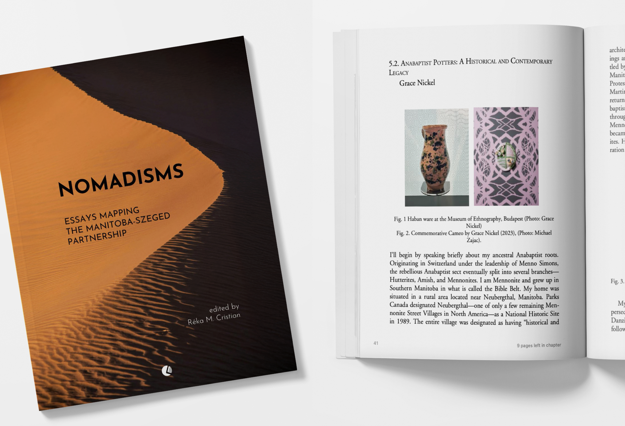 School of Art is excited to announce the release of Nomadisms: Essays Mapping the Manitoba-Szeged Partnership, a collaborative volume that marks a milestone in the partnership between the School of Art, University of Manitoba and the University of Szeged. Edited by Réka M. Cristian (University of Szeged) with technical guidance from Zoltán Dragon of AMERICANA, this volume brings together a wealth of thought-provoking essays exploring the theme of nomadism in its many dimensions.