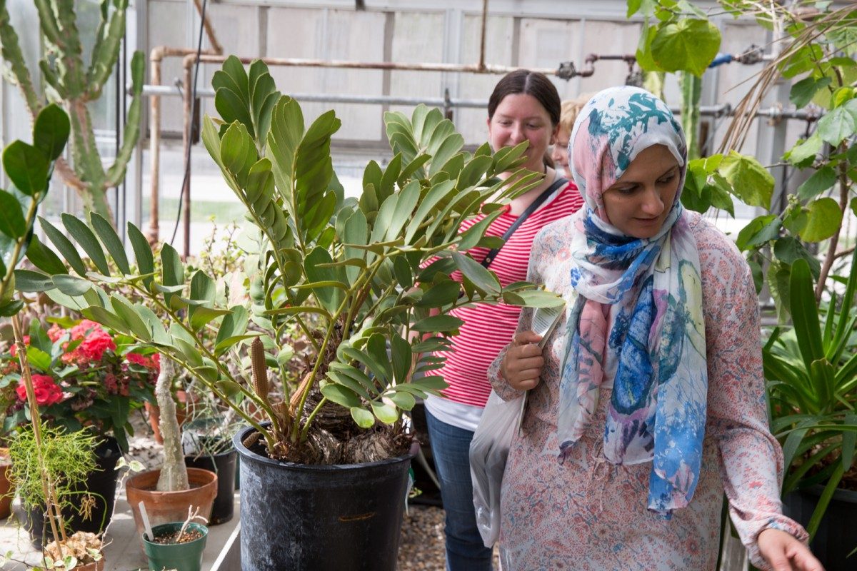 Participants at a staff and faculty wellness event at Buller Greenhouse.
