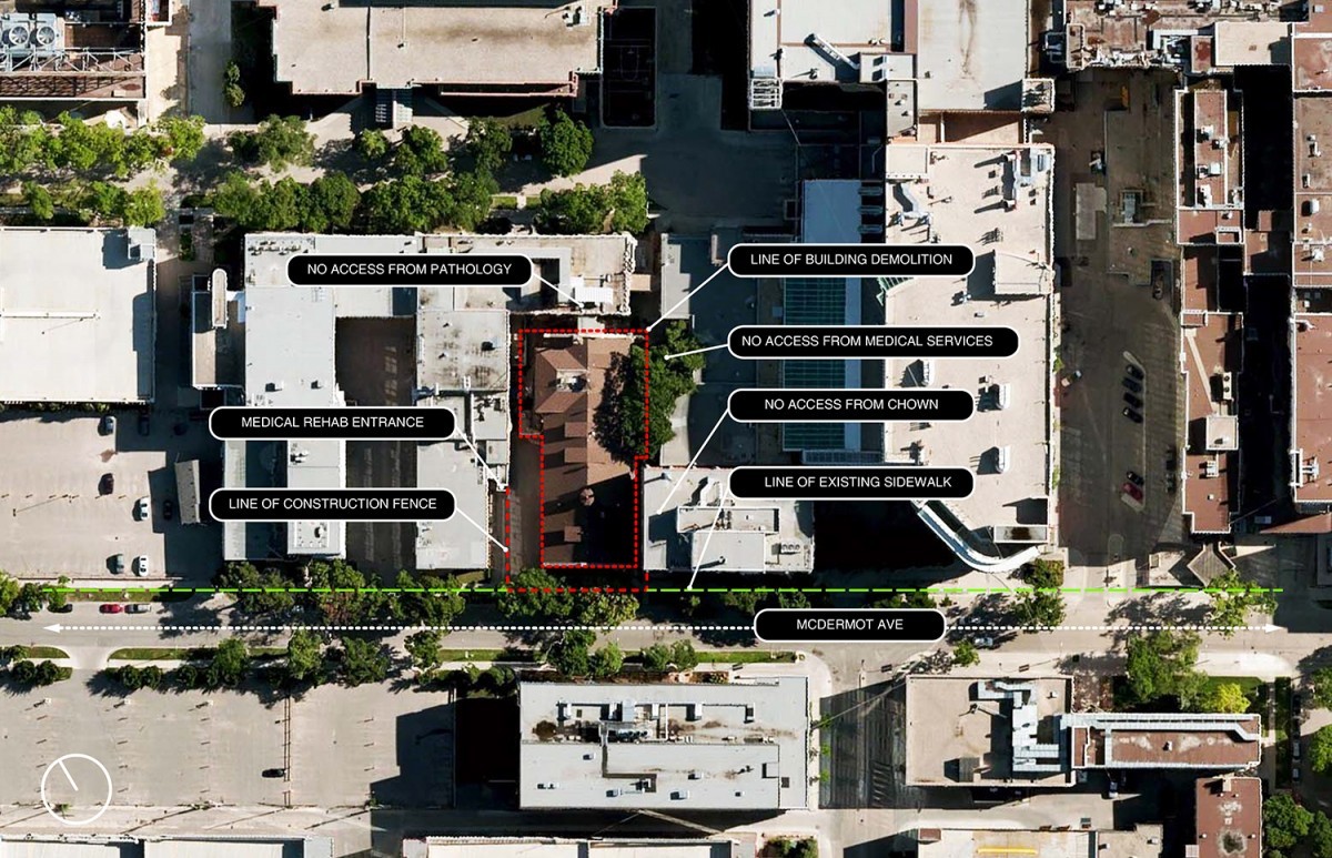 Entrance into Medical Rehabilitation off of McDermot will remain operational during construction; however, Parking Lot B will no longer be accessible.