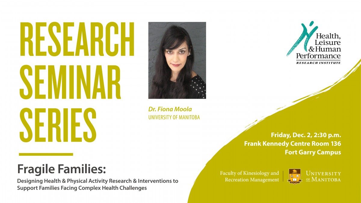 At the next installment of the Health, Leisure, and Human Performance Research Institute’s research seminar series, FKRM’s Dr Fiona Moola will outline a series of studies pertaining to the experience of health, illness, and physical activity in families and children facing complex health challenges. She will also outline effective strategies to better enhance and design interventions tailored to the complex lives of families facing major illnesses in childhood.