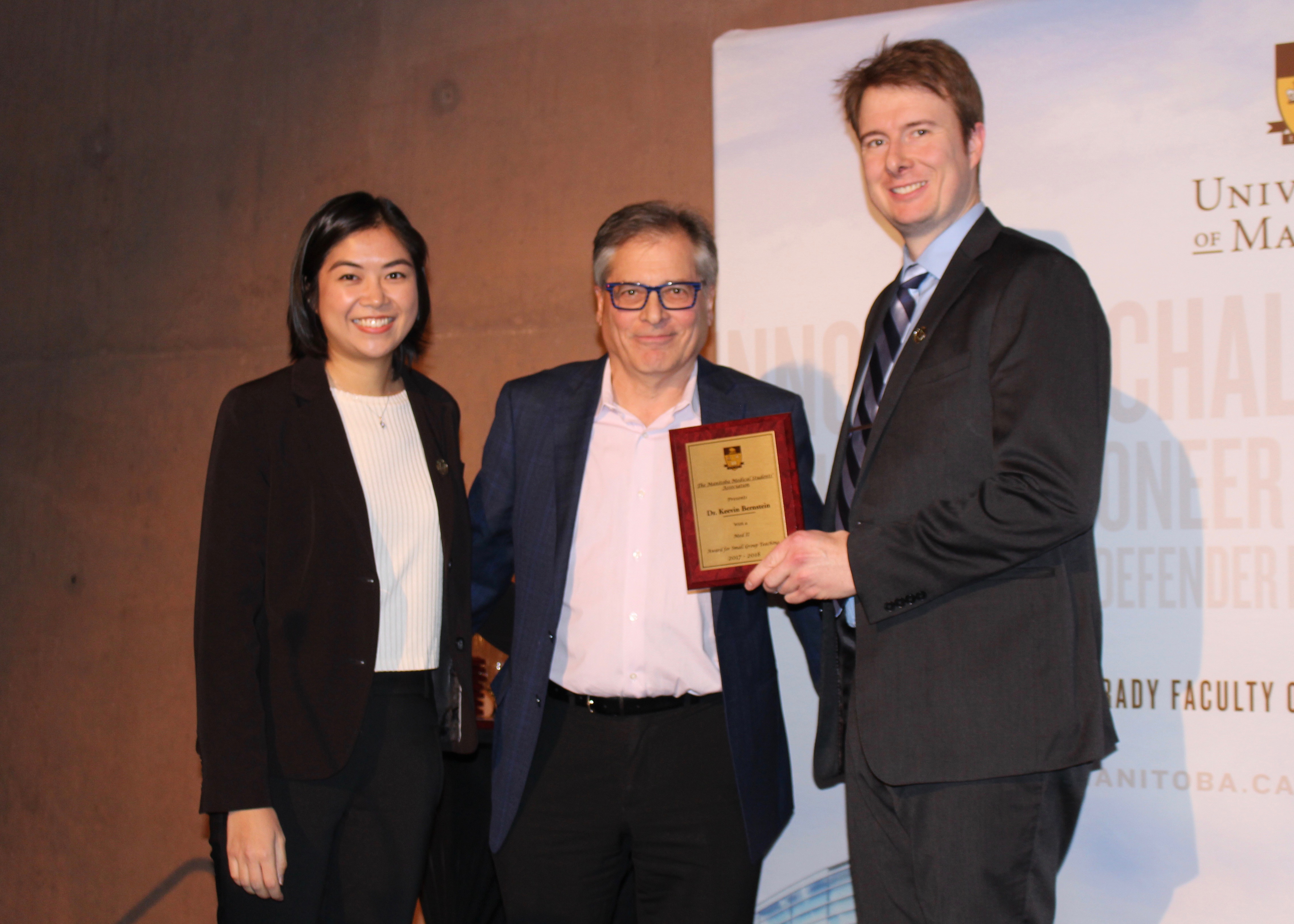 Earlier in the evening, emcee Dr. Ira Ripstein, associate dean of undergraduate medical education, thanked all the physicians and other teachers at the Max Rady College of Medicine in the Rady Faculty of Health Sciences, noting that teaching awards would be presented in 19 categories, voted on by medical students.
