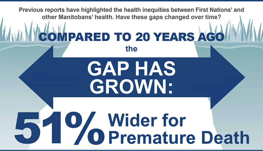 - The relative gap for premature death between First Nations and all other Manitobans widened by 51 per cent