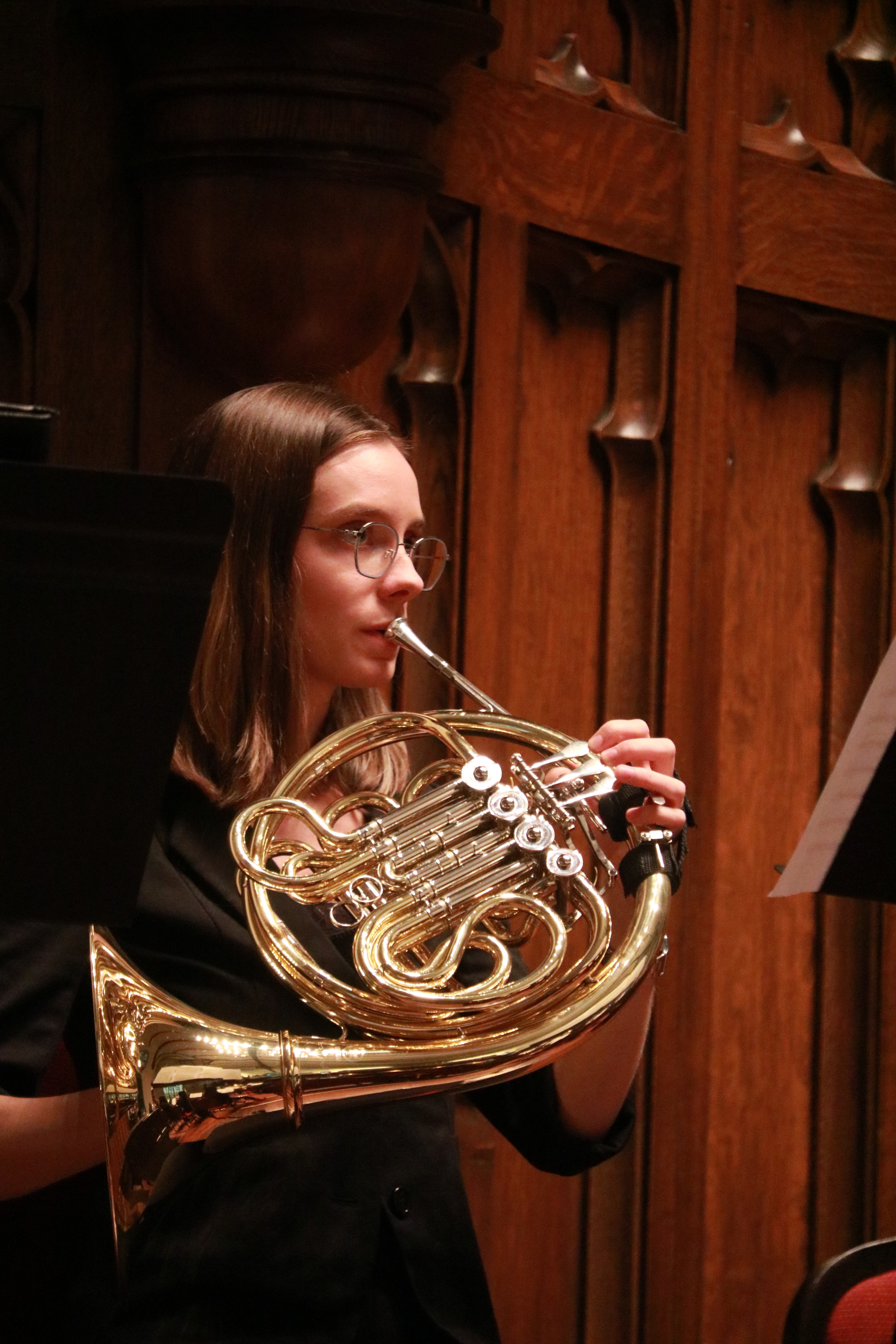“I played in two different woodwind quintets and a brass quintet, was an alto in Concert Choir in my first year, performed a couple of times with the Jazz Orchestra on horn, and once with the Percussion Ensemble as a tam-tam player,” she says.
