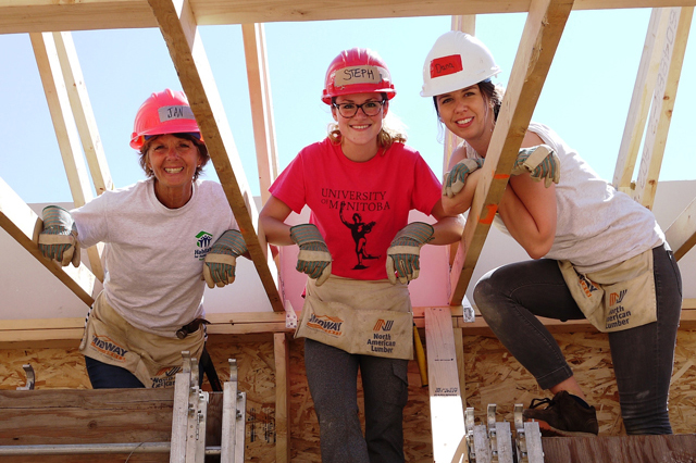 Training is provided on-site. Hardhats, safety glasses, gloves, boots and tools are supplied. There will be a job to suit every volunteer’s comfort level, organizers say, as a house gets framed up right on the Bannatyne campus.