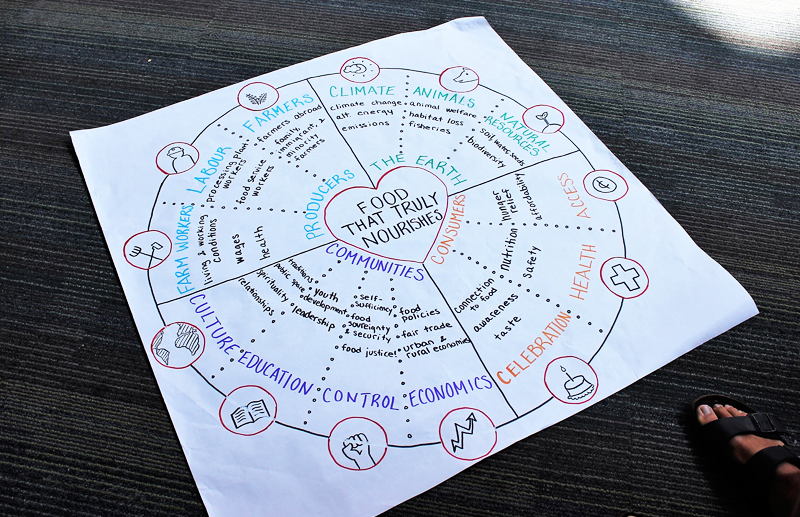 The Good Food Wheel is an educational tool the Campus Food Strategy Group uses to encompass the definition of Good Food and key players in the campus and community food system.