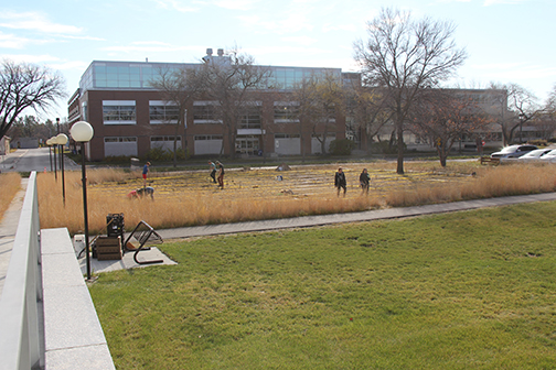 Within six days, hole by hole was punched, and bulb after bulb was planted into Fort Garry Campus soil. Physical Plant donated and delivered the sand. After planting, each hole was filled with an airy mixture of sand and existing soil, and it is hoped that this mix will provide a cozy cushion for the bulbs’ hibernation.