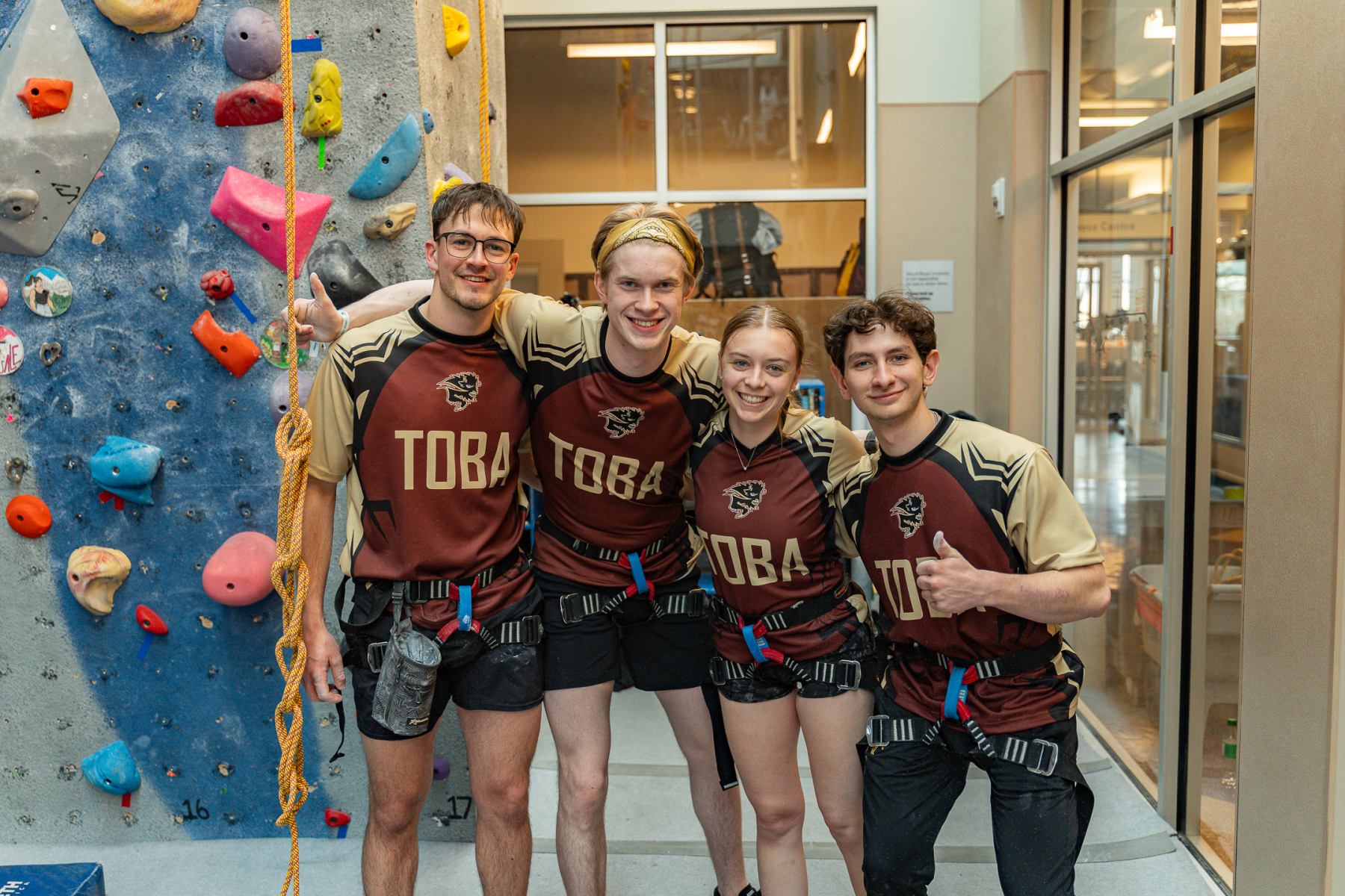 For the academic challenge, the team had to create a case study pre-conference, present an academic poster and play a kinesiology-based trivia game that also involved rock climbing.
