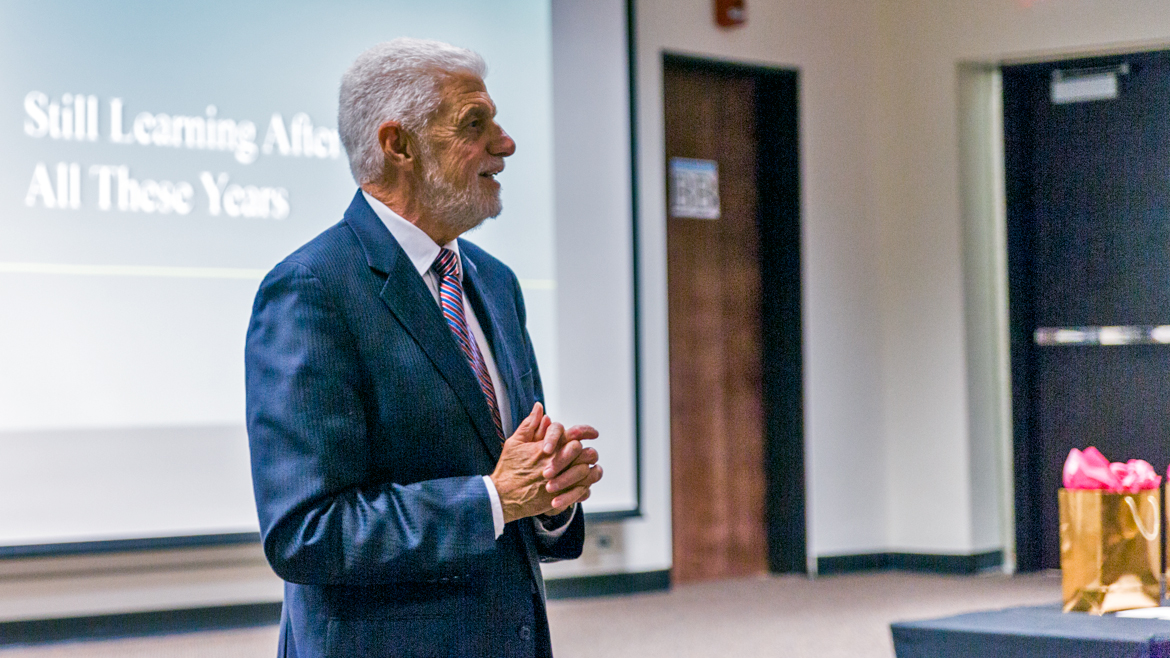 “All of us are aware of his decades of service toward our shared goal of creating better futures by educating people who will shape the world, Barnard said. “Honestly, I consider it a personal privilege to be associated with the university where you have made so many major contributions for all of us. You’ve enriched many lives. You’ve enriched this university.”